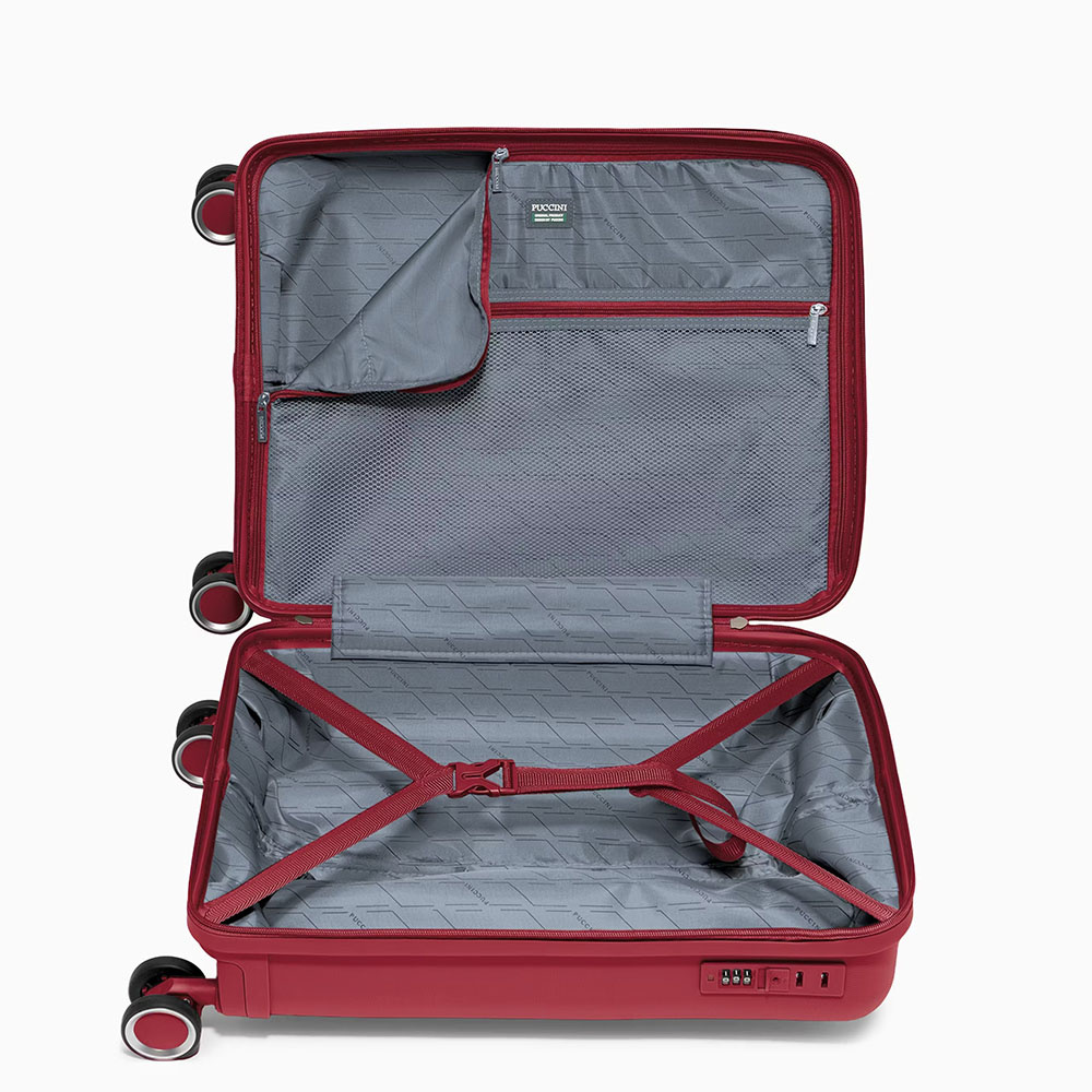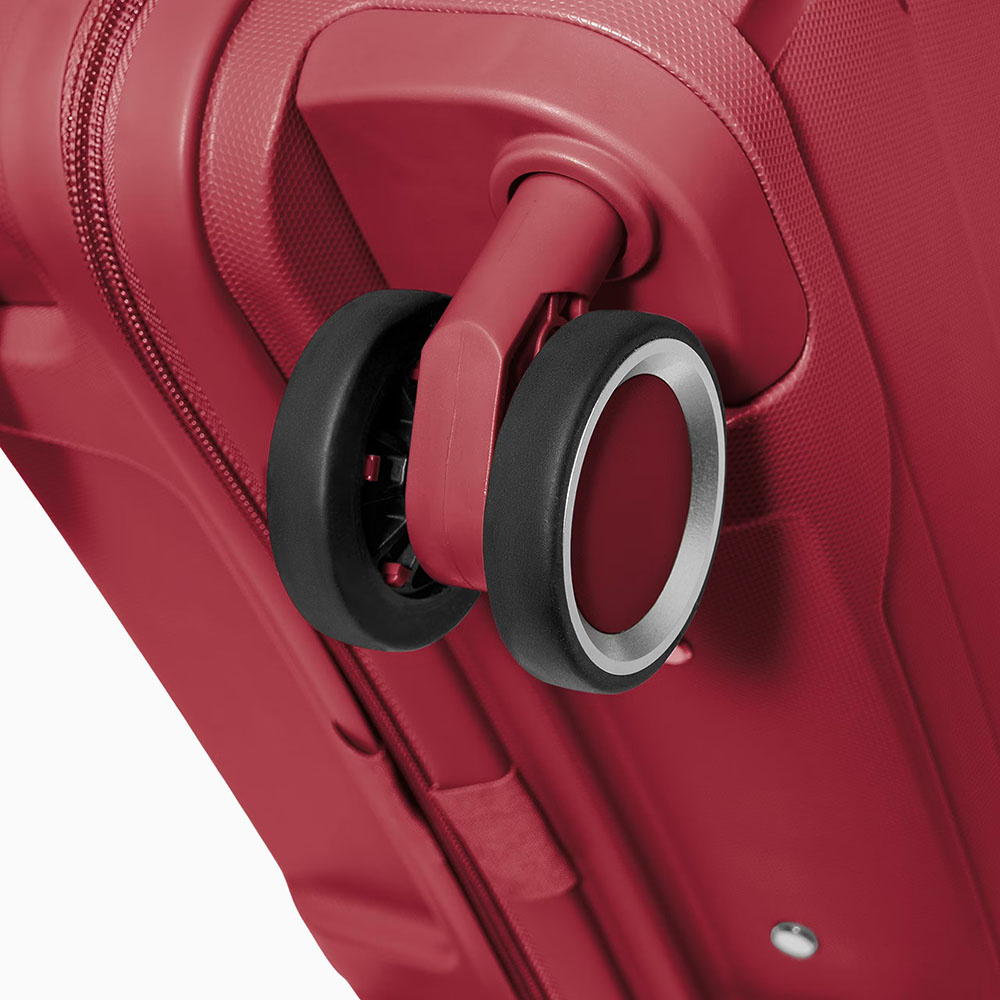 - walizka twarda wykonana z polipropylenu, materiału charakteryzującego się super lekką wagą i niezwykłą wytrzymałością