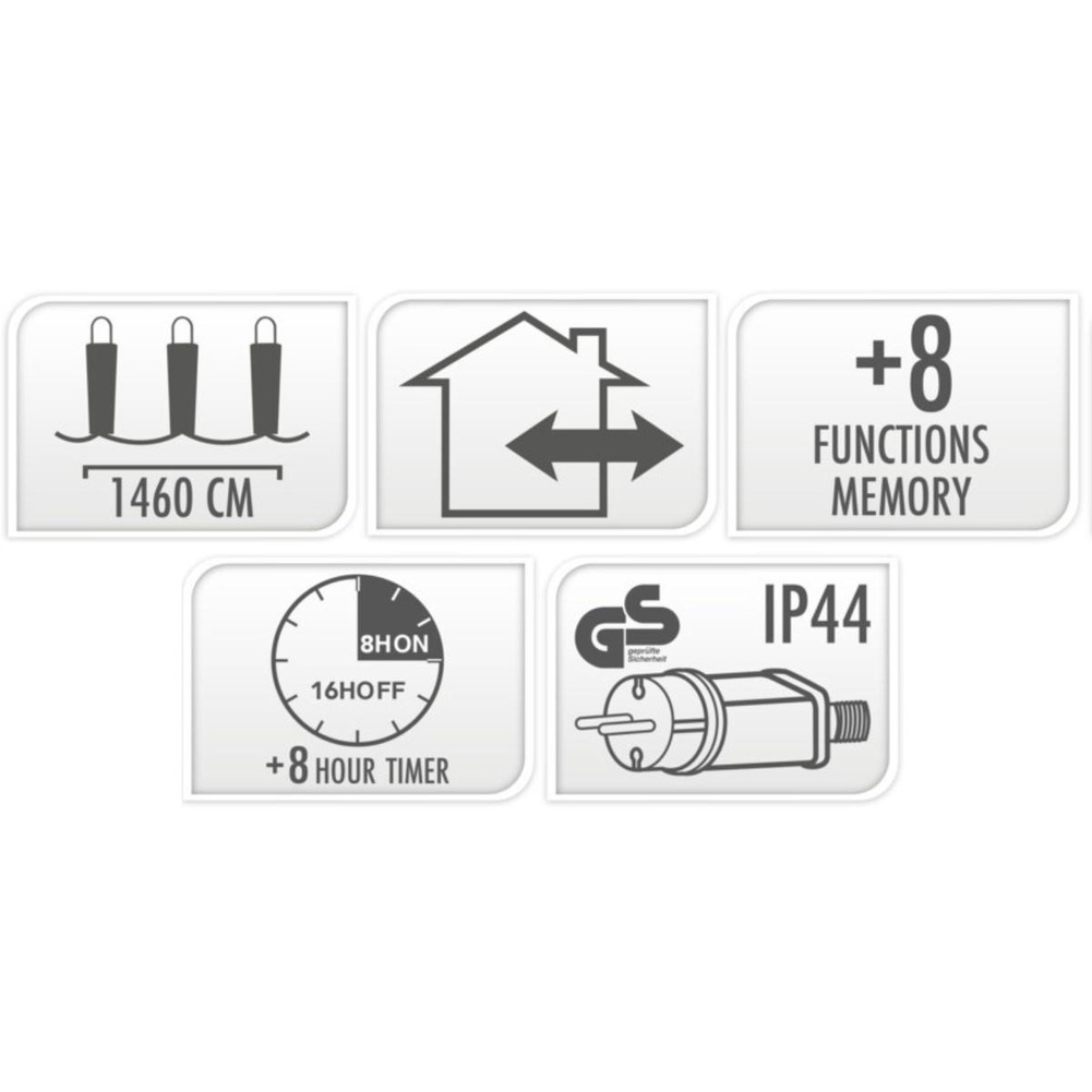 Dzięki wbudowanemu timerowi 8/16, lampki automatycznie włączają się i świecą przez 8 godzin, a następnie wyłączają się na 16 godzin, co pozwoli Ci cieszyć się świąteczną atmosferą bez konieczności pamiętania o ich włączaniu i wyłączaniu.