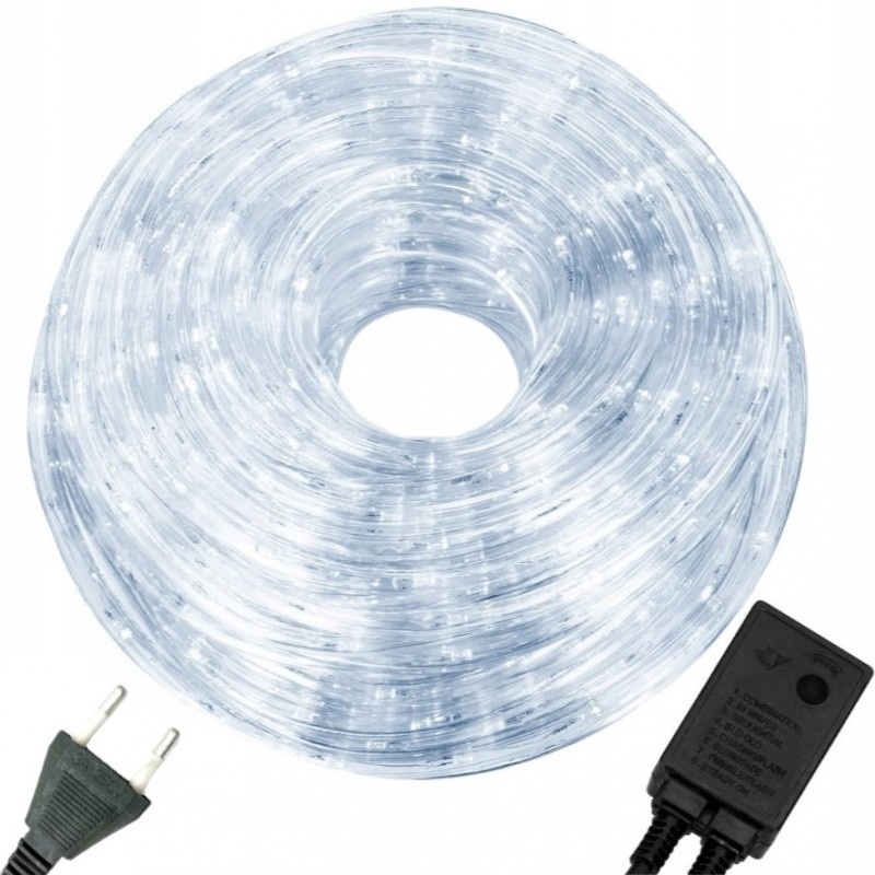 Specyfikacja: Kolor diod: biały zimny Kolor kabla: transparentny + czarny Zasilanie: sieciowe - 8 trybów świecenia: kombinacja, fale światła, sekwencja, slo-glo, miganie,