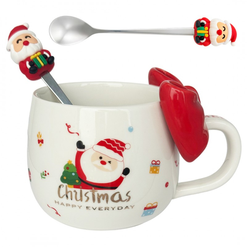KUBEK CERAMICZNY z motywem świątecznym Zestaw z ozdobną łyżeczką, w dekoracyjnym pudełku Idealny gadżet dla każdego miłośnika kawy czy herbaty.