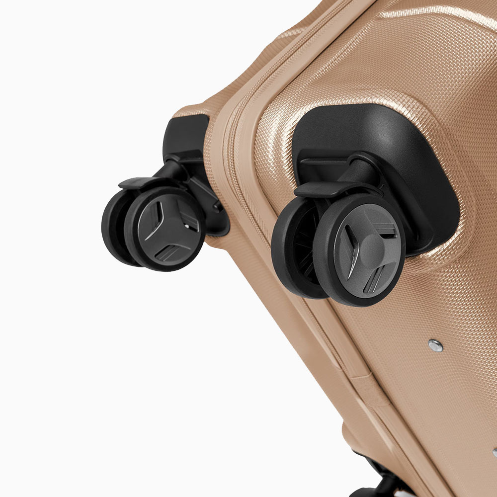 Cairo Collection dostępna jest w trzech rozmiarach – dużym, średnim i kabinowym – dzięki czemu można dopasować walizkę do każdej podróży. Bogata paleta kolorów obejmuje zarówno klasyczne odcienie, jak i efektowne barwy rose gold oraz złotą, które przyciągają wzrok i pozwalają wyróżnić się na lotnisku.