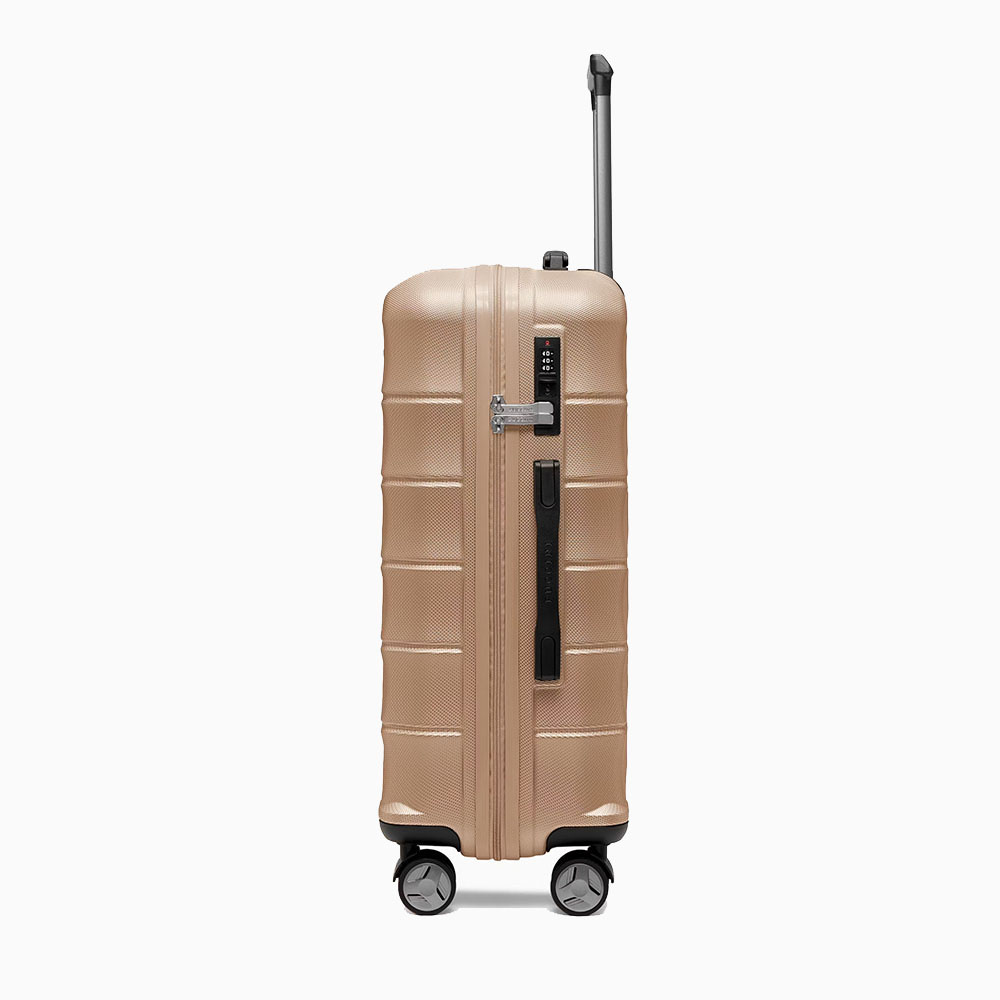Cairo Collection dostępna jest w trzech rozmiarach – dużym, średnim i kabinowym – dzięki czemu można dopasować walizkę do każdej podróży. Bogata paleta kolorów obejmuje zarówno klasyczne odcienie, jak i efektowne barwy rose gold oraz złotą, które przyciągają wzrok i pozwalają wyróżnić się na lotnisku.