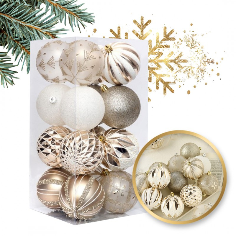Komplet 16 sztuk bombek na choinkę Dodaj swojemu wnętrzu odrobinę zimowej magii.