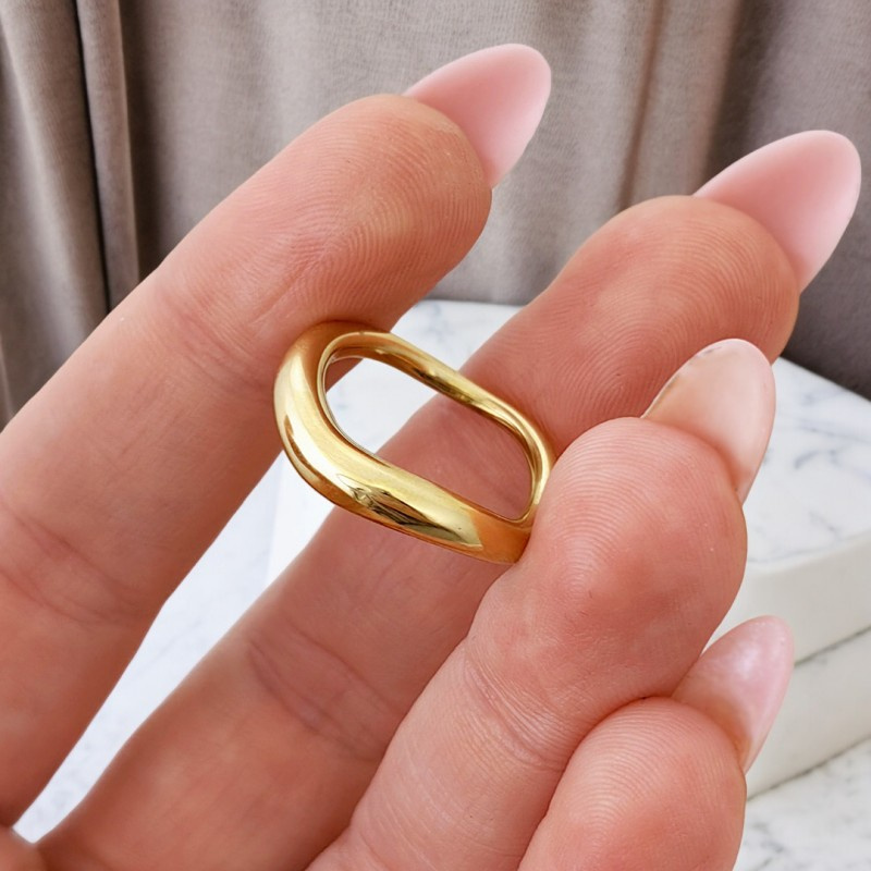 PLATEROWANY 18 karatowym złotem pierścionek ze stali szlachetnej Kolor: złoty STAL NIERDZEWNA jest odporna na warunki atmosferyczne, nie ulega korozji, nie