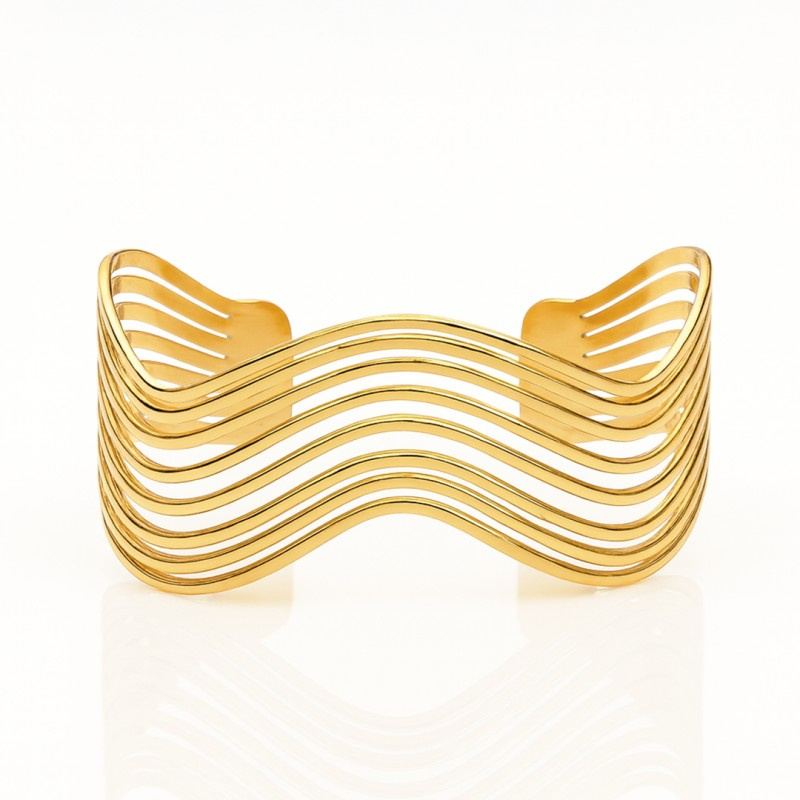 Modna bransoletka ze stali nierdzewnej platerowana 14 karatowym złotem Świetnie pasuje do eleganckich, jak również do codziennych stylizacji Elegancki dodatek na