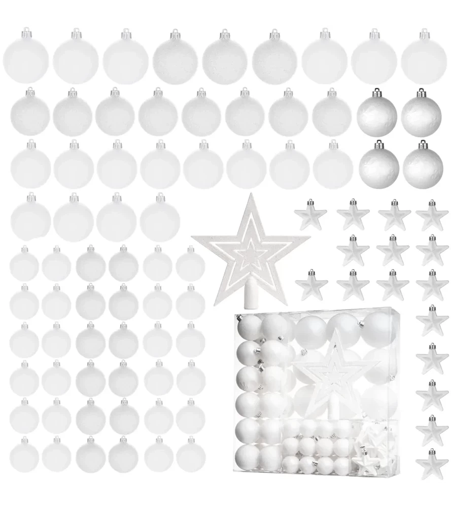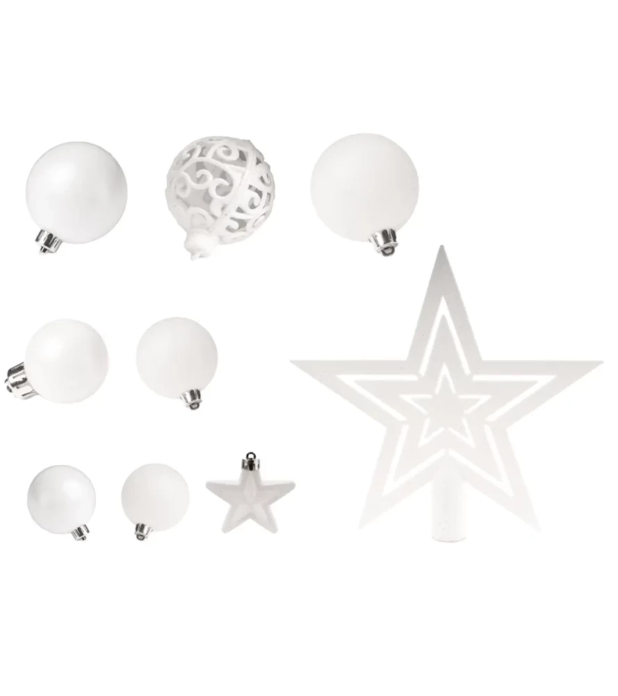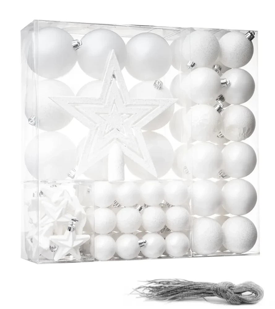 Bombki choinkowe ze szpicem komplet 86szt. nietłukących plastikowych bombek AK- Biały