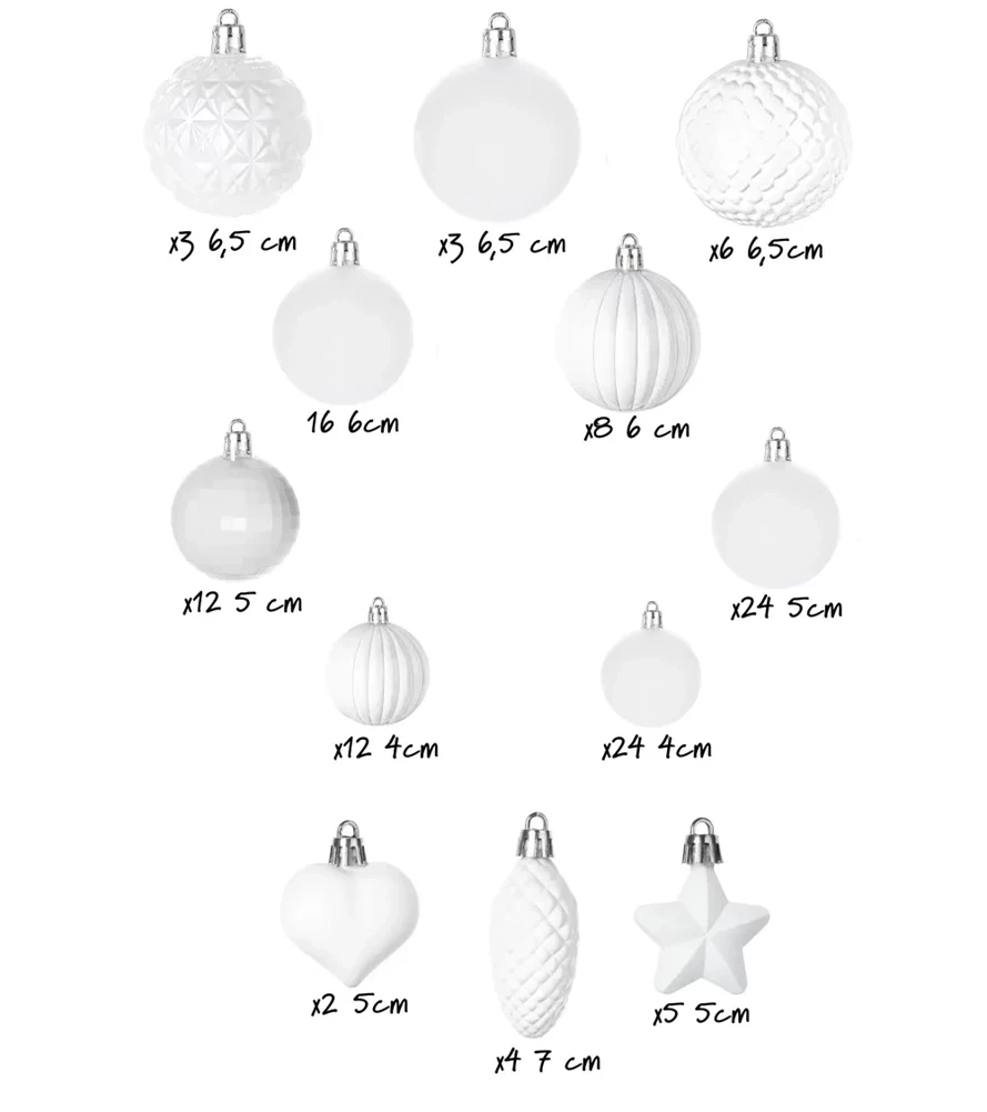 To, co wyróżnia ten zestaw, to różnorodność, jaką oferuje. W tej kolekcji znajdziesz delikatne bombki ażurowe, efektowne i błyszczące ozdoby ozdobione brokatem, a także eleganckie i wyrafinowane ozdoby matowe. Ta różnorodna mieszanka sprawi, że Twoje drzewko przyciągnie uwagę wszystkich gości, czyniąc go głównym elementem świątecznych uroczystości.