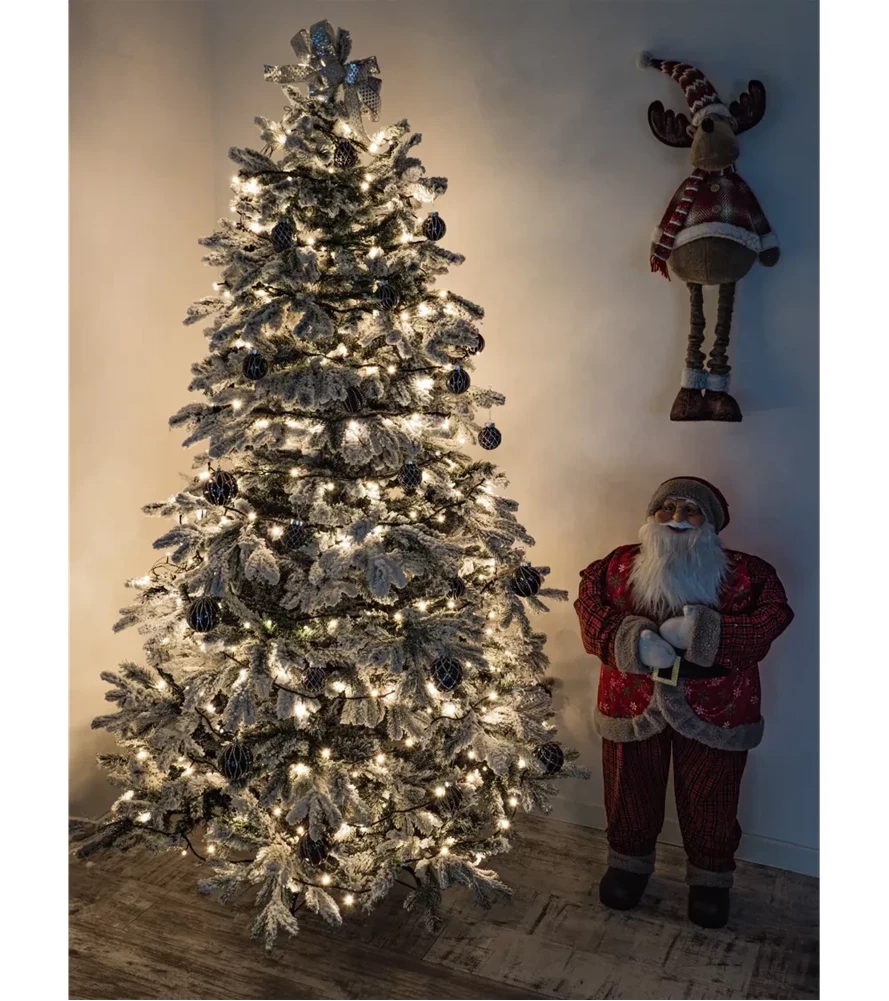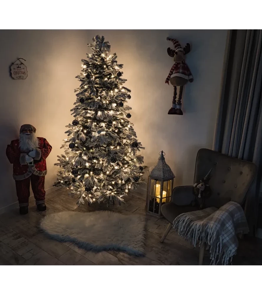 Ta choinka posiada wyjątkową powłokę ze sztucznego śniegu, która wzmacnia świąteczną atmosferę, sprawiając, że każda chwila staje się magiczna.