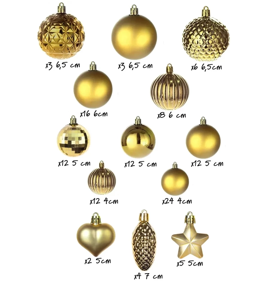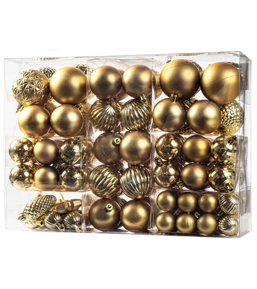 Bombki choinkowe komplet 120 szt. nietłukących plastikowych bombek - Złoty