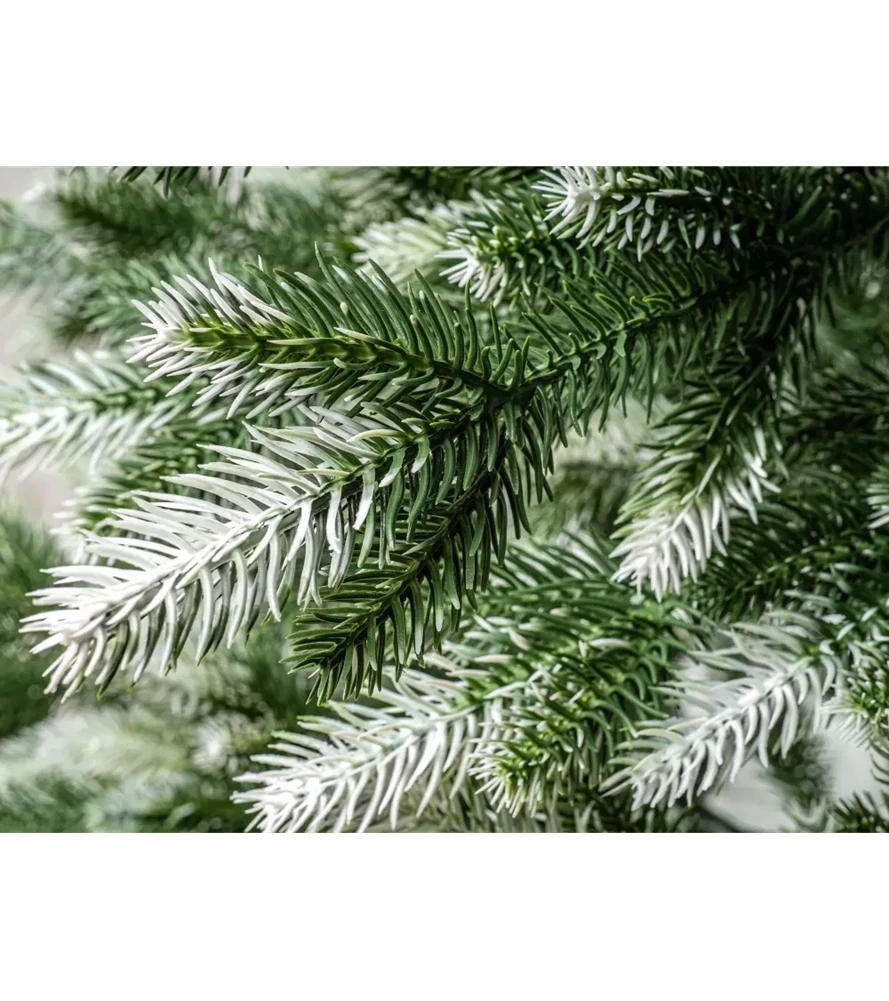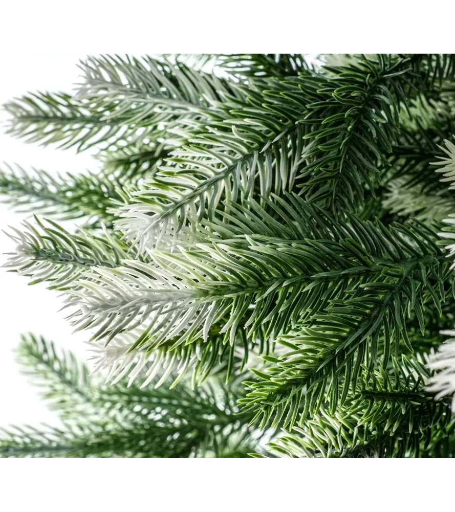 Igły wykonane z PE są miękkie, elastyczne i mają naturalny, zielony kolor. Białe końcówki igieł nadają choince efektowny, oszroniony wygląd, który przywodzi na myśl prawdziwe drzewko pokryte szronem.