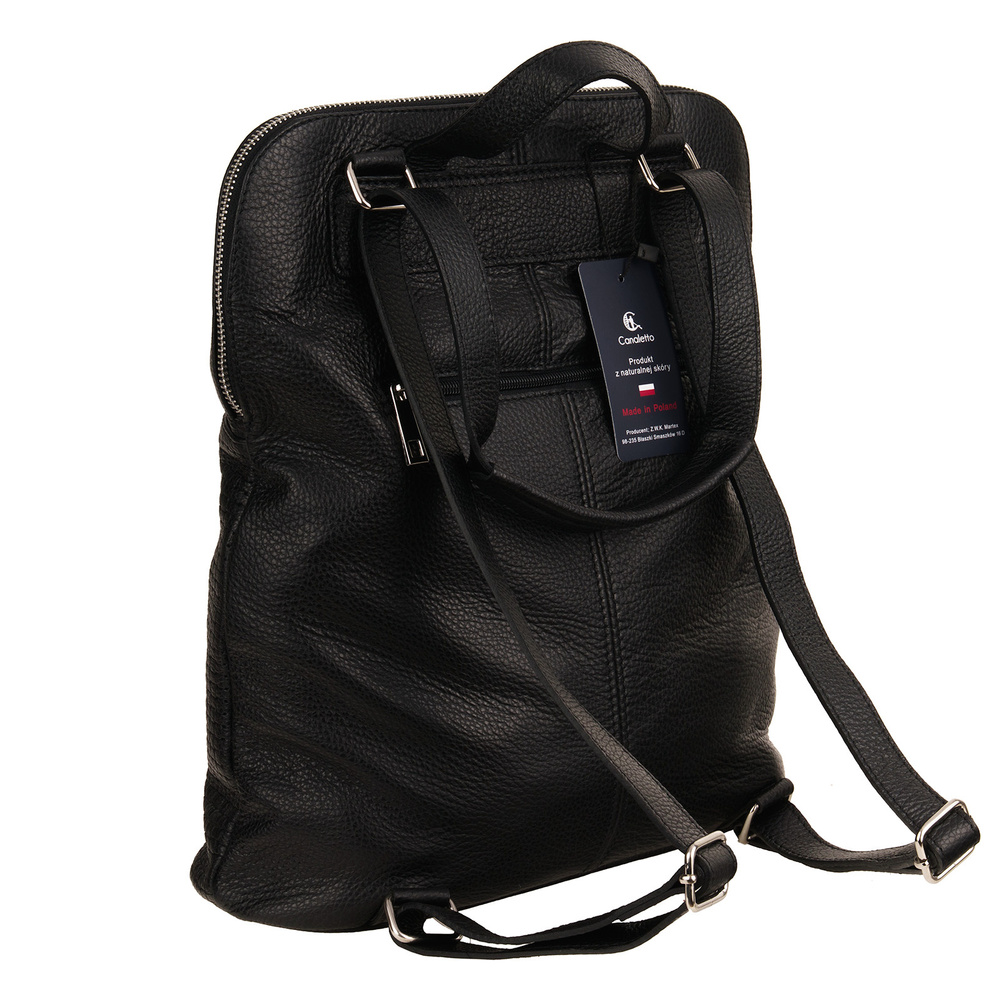 Całość dopełniają srebrne okucia, które subtelnie kontrastują ze skórą, oraz sygnatura Canaletto – znak autentyczności i przywiązania do estetyki. To detale, które robią różnicę i podkreślają charakter torbo-plecaka.