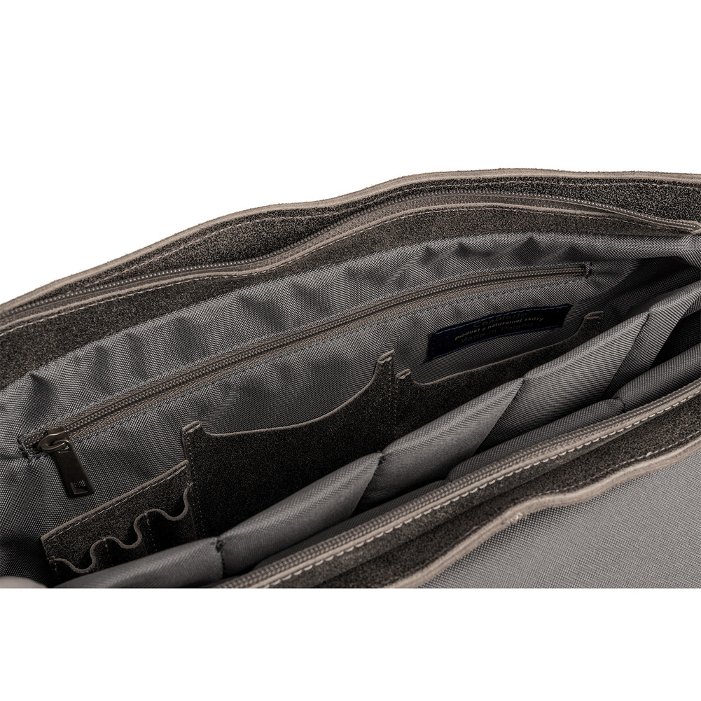 Wewnątrz znajduje się wyściełana przegroda na laptopa o przekątnej do 15 cali, dzięki czemu urządzenie podróżuje bezpiecznie nawet w dynamicznych warunkach. Obok niej umieszczono praktyczne kieszenie na telefon, długopisy, dokumenty oraz mniejszą kieszonkę na zamek, idealną na klucze lub portfel.