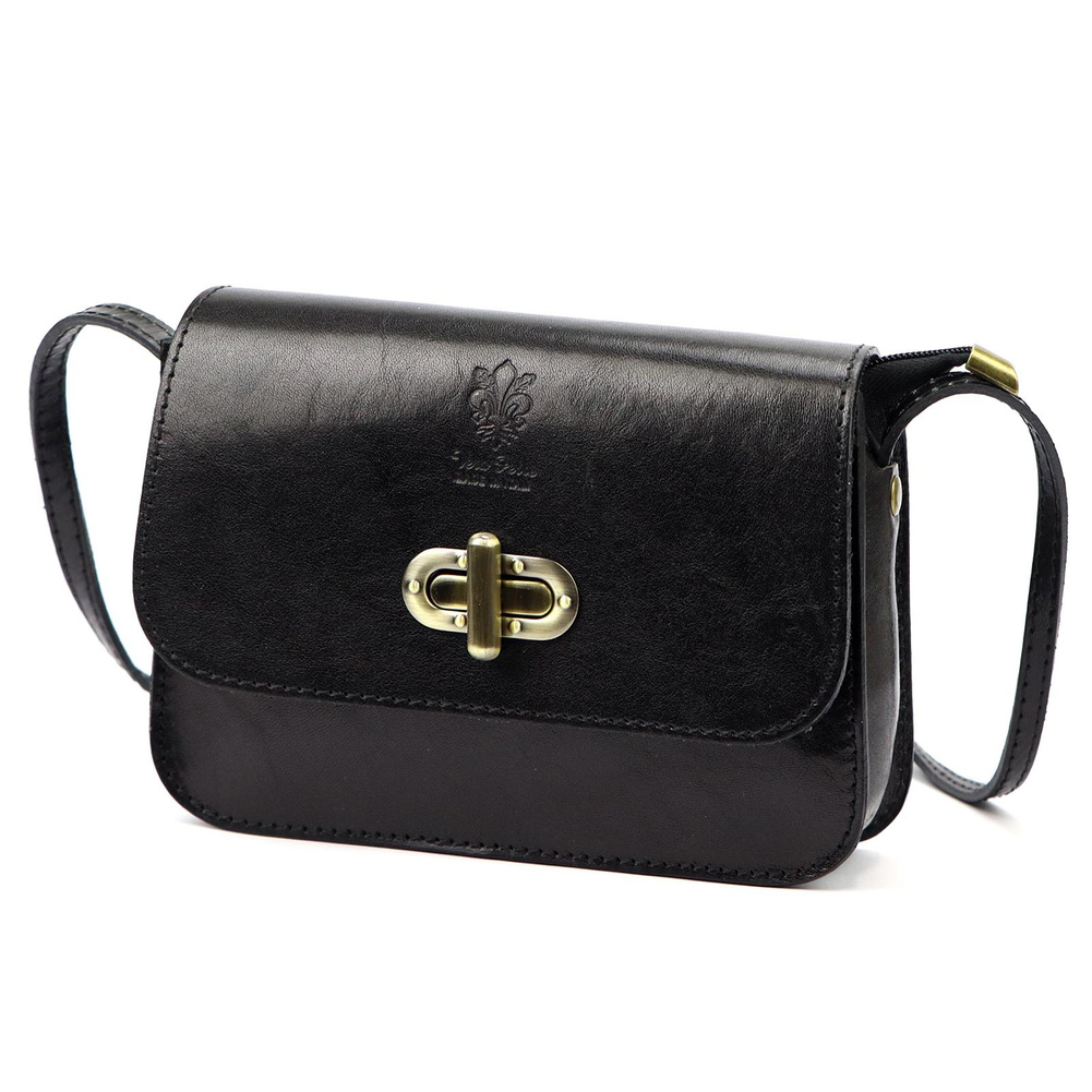 Nieduża torebka-listonoszka z naturalnej, włoskiej skóry licowej. Torebka ma budowę jednokomorową, wyposażoną w malutką kieszonkę. Całość zamykana jest zamkiem błyskawicznym i klapą z ozdobną "przekrętką". Długi pasek pozwala wygodnie nosić ją na ramieniu lub na ukos przez pierś.