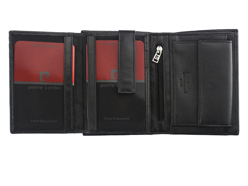 Elegancki, obszerny portfel męski, wykonany z najwyższej jakości, naturalnej włoskiej skóry licowej. Budowa portfela: - orientacja pionowa, - dwie przegrody na banknoty, - dwanaście przegródek na karty magnetyczne, - dwa "okienka" na zdjęcie, - centralnie umieszczona kieszonka zapinana na zamek błyskawiczny, - kieszeń na drobne, zamykana na zatrzask.