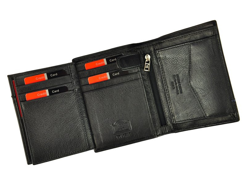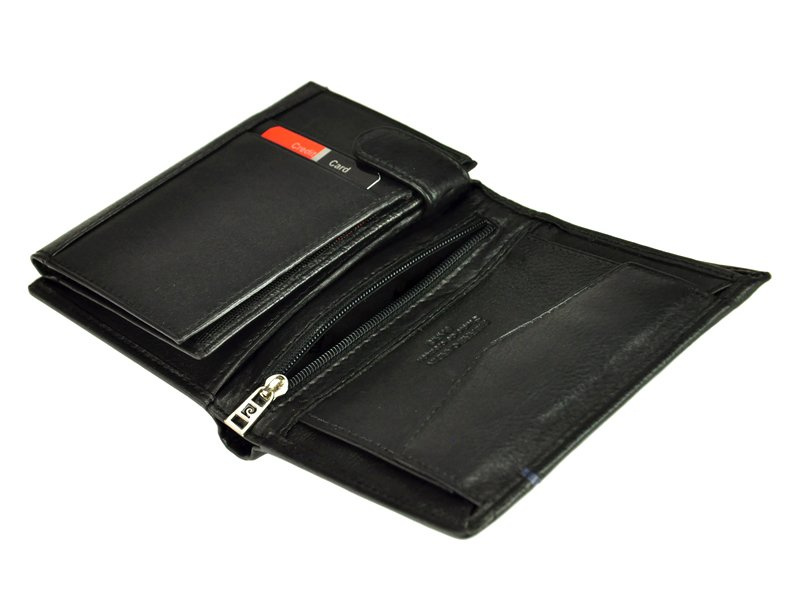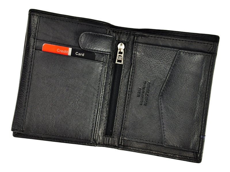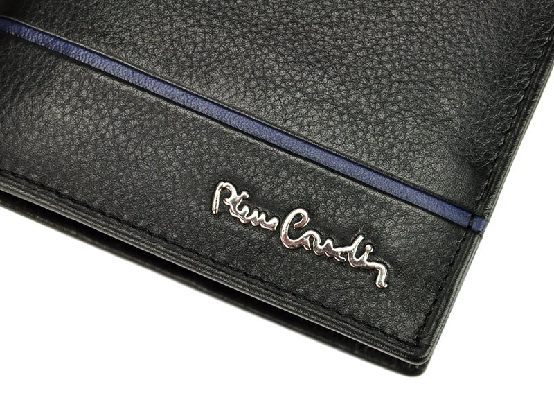 Klasyczny portfel męski, prestiżowej marki Pierre Cardin, wykonany z najwyższej jakości, naturalnej włoskiej skóry licowej. Budowa portfela: - orientacja pionowa, - dwie przegrody na banknoty, - dziewięć przegródek na karty magnetyczne, - dwa "okienka" na zdjęcie, - centralnie umieszczona kieszonka zapinana na zamek błyskawiczny, - kieszeń na drobne, zamykana na zatrzask, - na froncie portfela umieszczono metalowe logo producenta. Portfel dostarczany jest w oryginalnym pudełku - doskonale nadaje się na prezent.