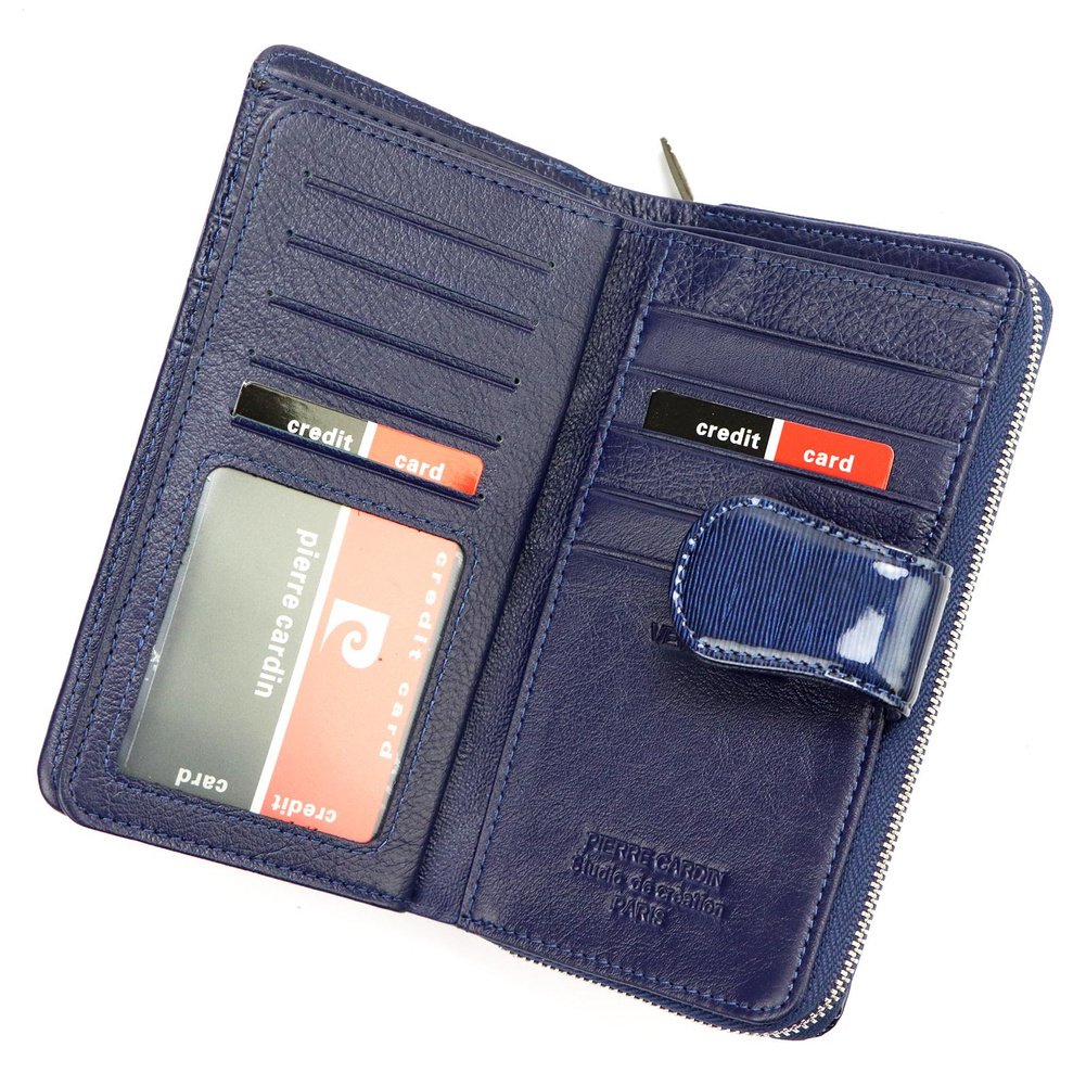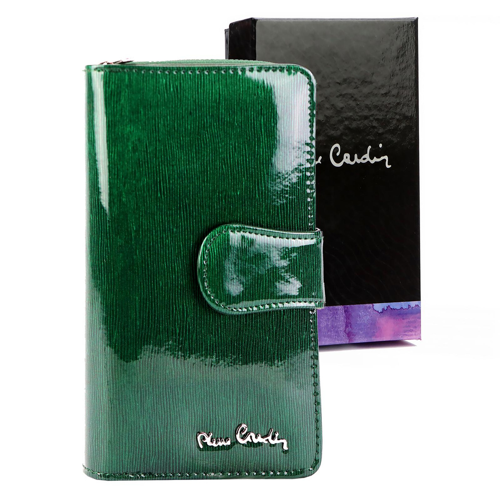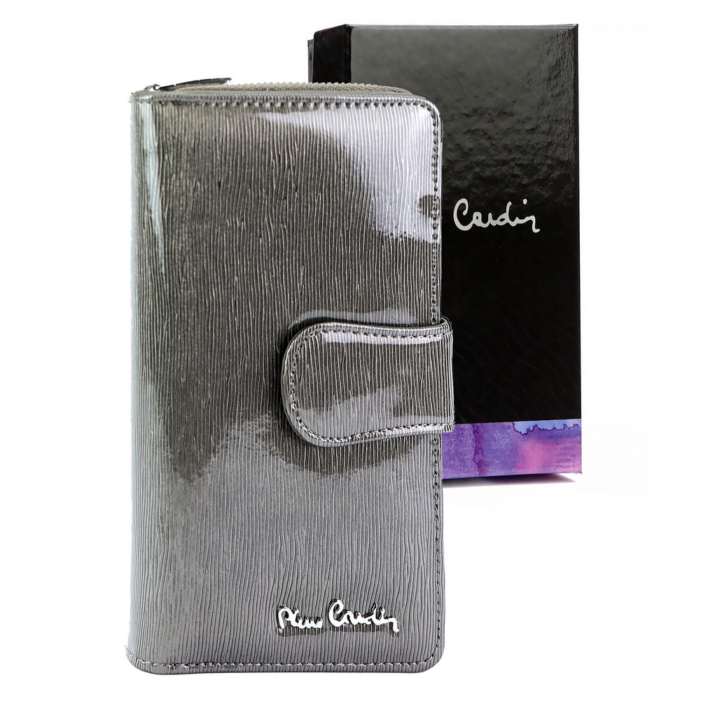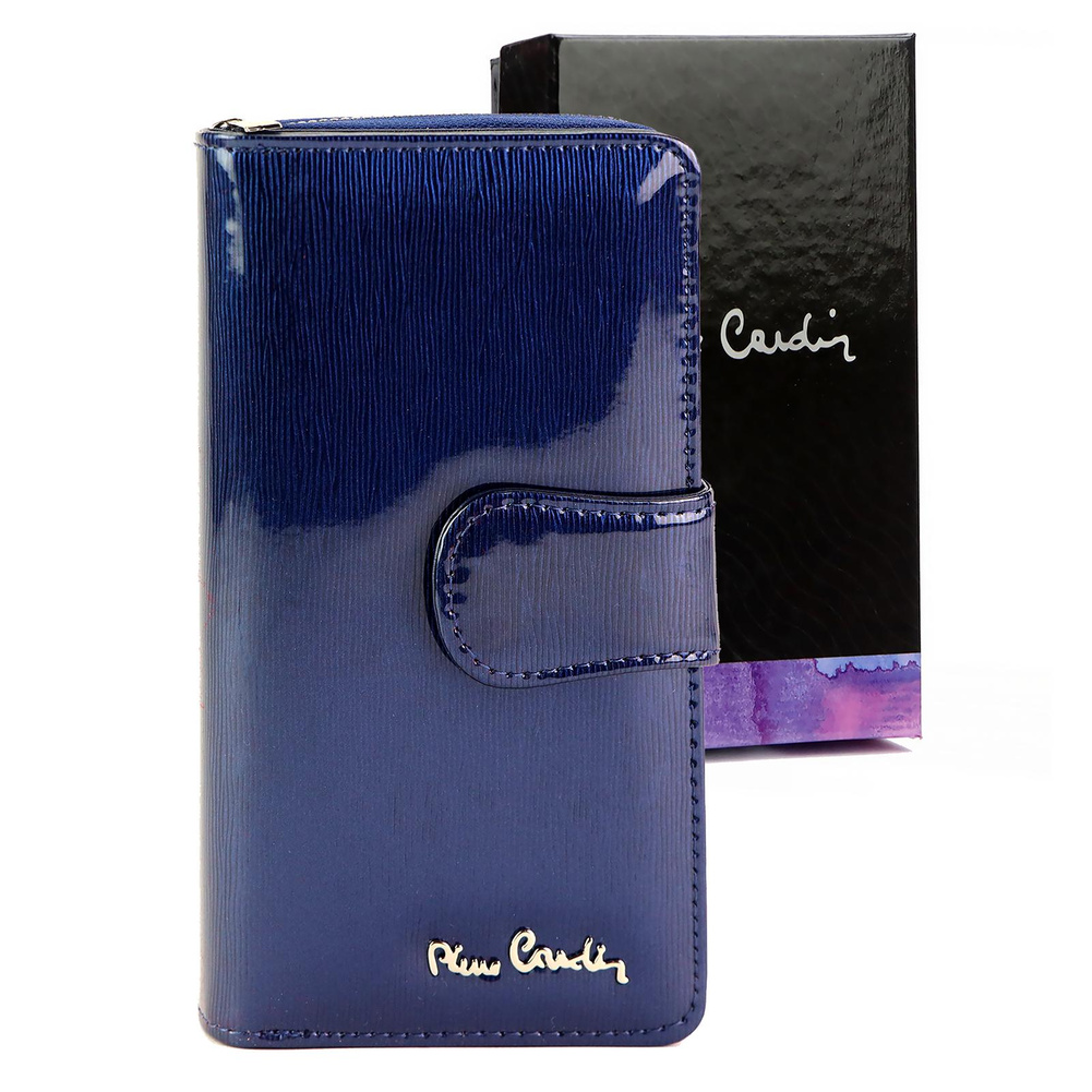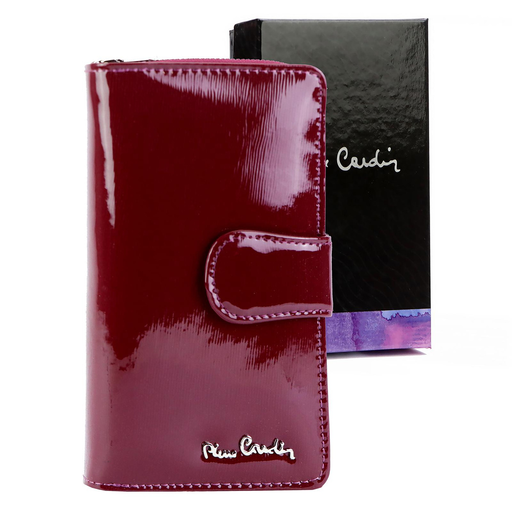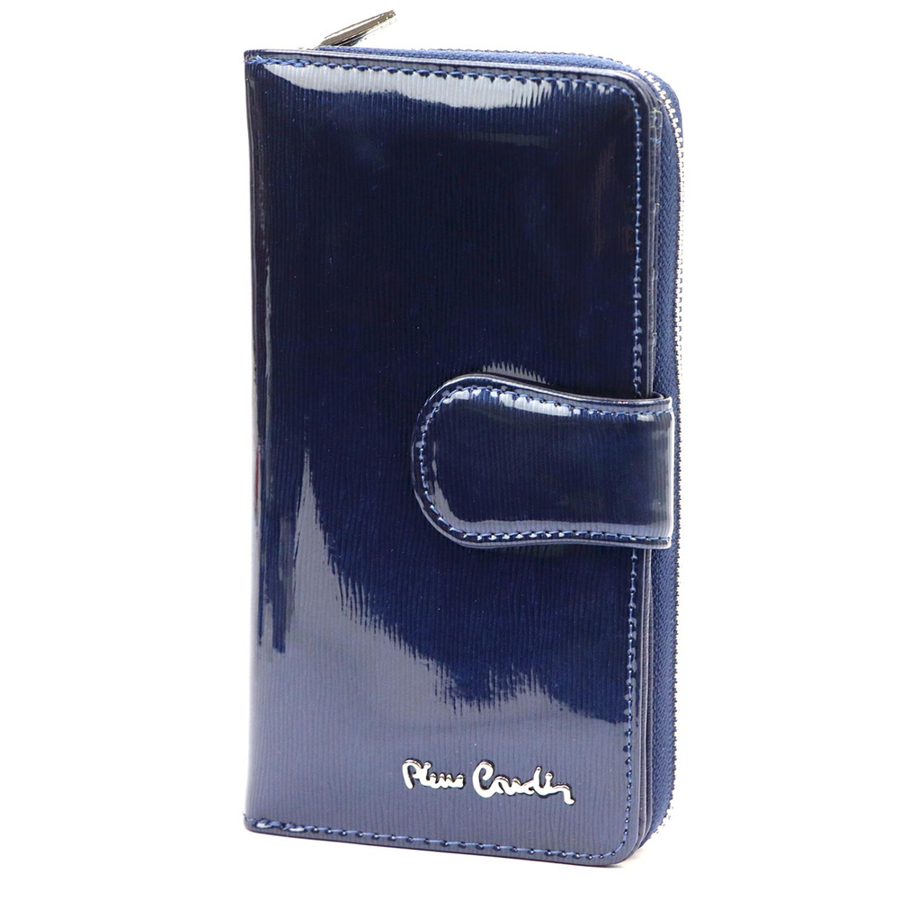 Duży portfel damski, wykonany z najwyższej jakości naturalnej, włoskiej skóry licowej lakierowanej. Budowa portfela: - orientacja pionowa, - dwie przegrody na banknoty, - szesnaście przegródek na karty magnetyczne, - dwa "okienka" na zdjęcie, - kieszeń na drobne, podzielona na dwie części przegródką zapinaną na suwak, zamykana na zamek błyskawiczny, - całość zamykana patką z zatrzaskiem. Portfel dostarczany jest w oryginalnym, firmowym pudełku - idealny na prezent.