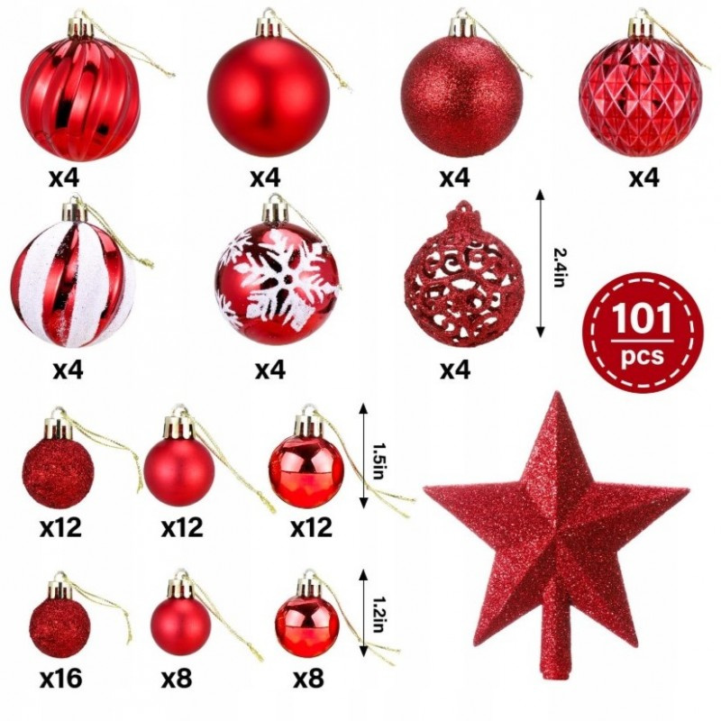 Zestaw 100 sztuk bombek na choinkę + gwiazda choinkowa Dzięki nim magia Świąt Bożego Narodzenia jest jeszcze większa!