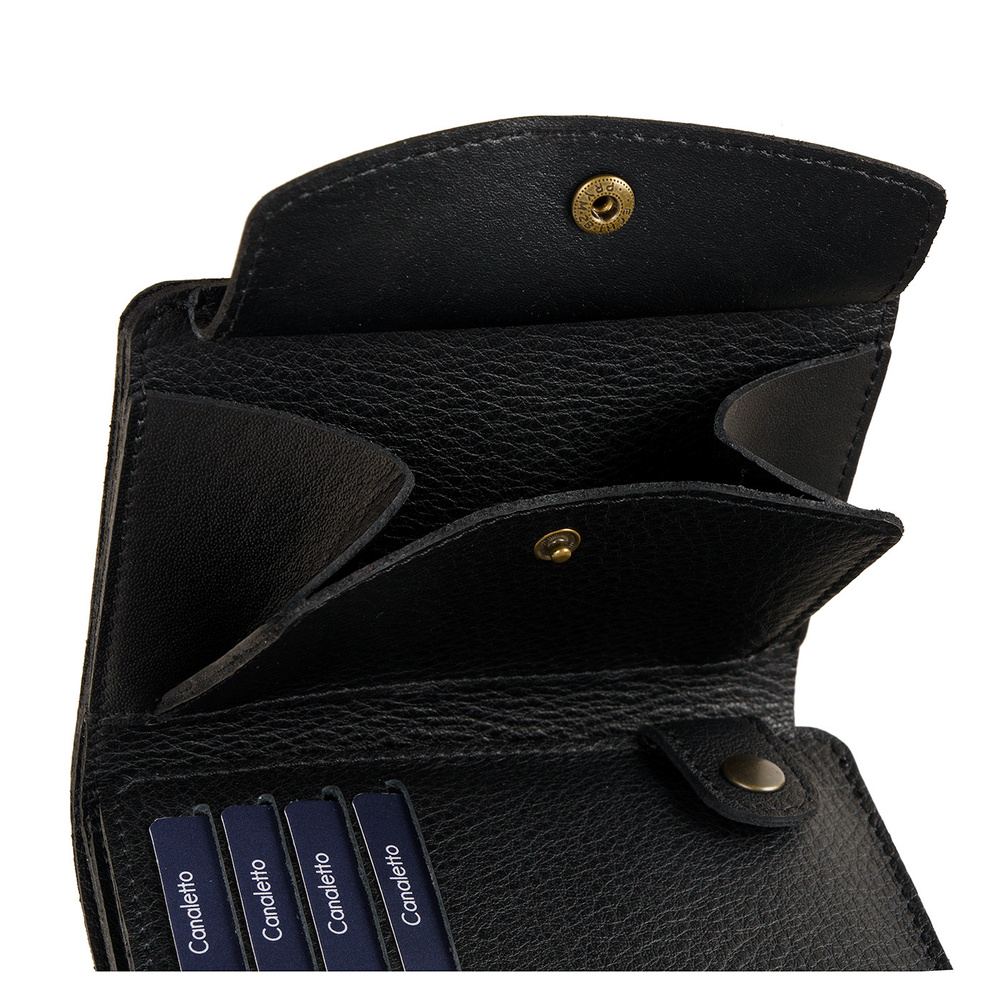Wykonany z naturalnej skóry licowej o groszkowanej fakturze, portfel zachwyca miękkością i solidnością.