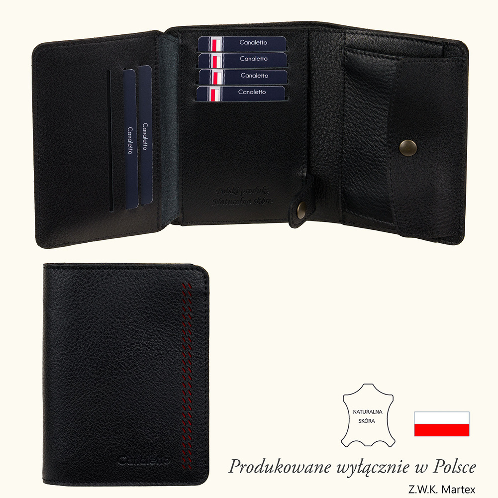 Portfel męski Canaletto powstaje w rodzinnej manufakturze – Zakładzie Wyrobów Kaletniczych Martex, gdzie tradycyjne rzemiosło i sprawdzone techniki spotykają się z nowoczesnym podejściem do designu. Każdy egzemplarz to efekt ręcznej pracy, dokładnej selekcji skóry i dbałości o każdy detal.