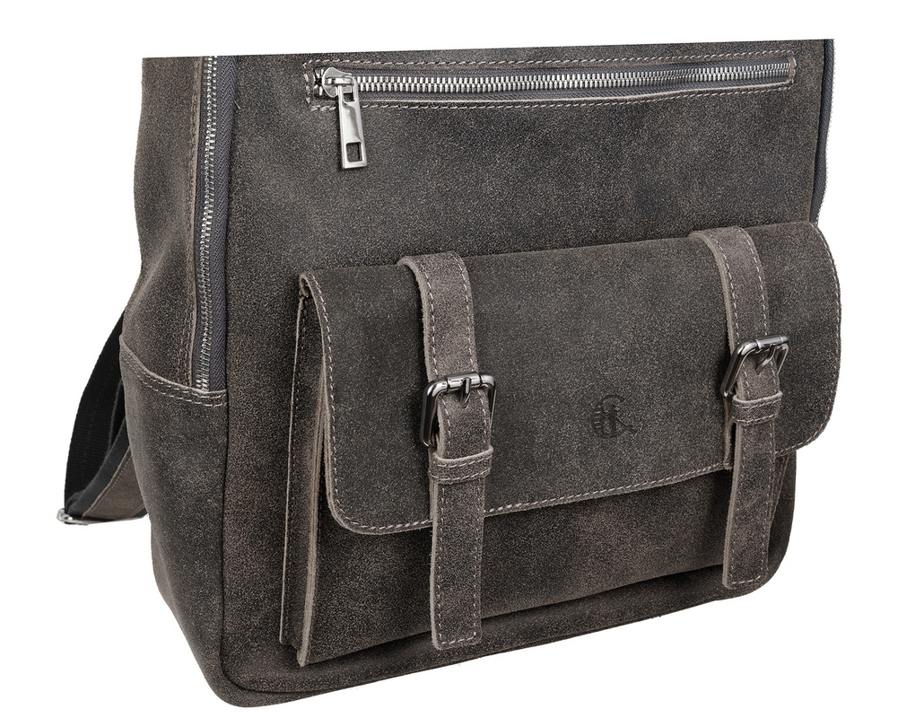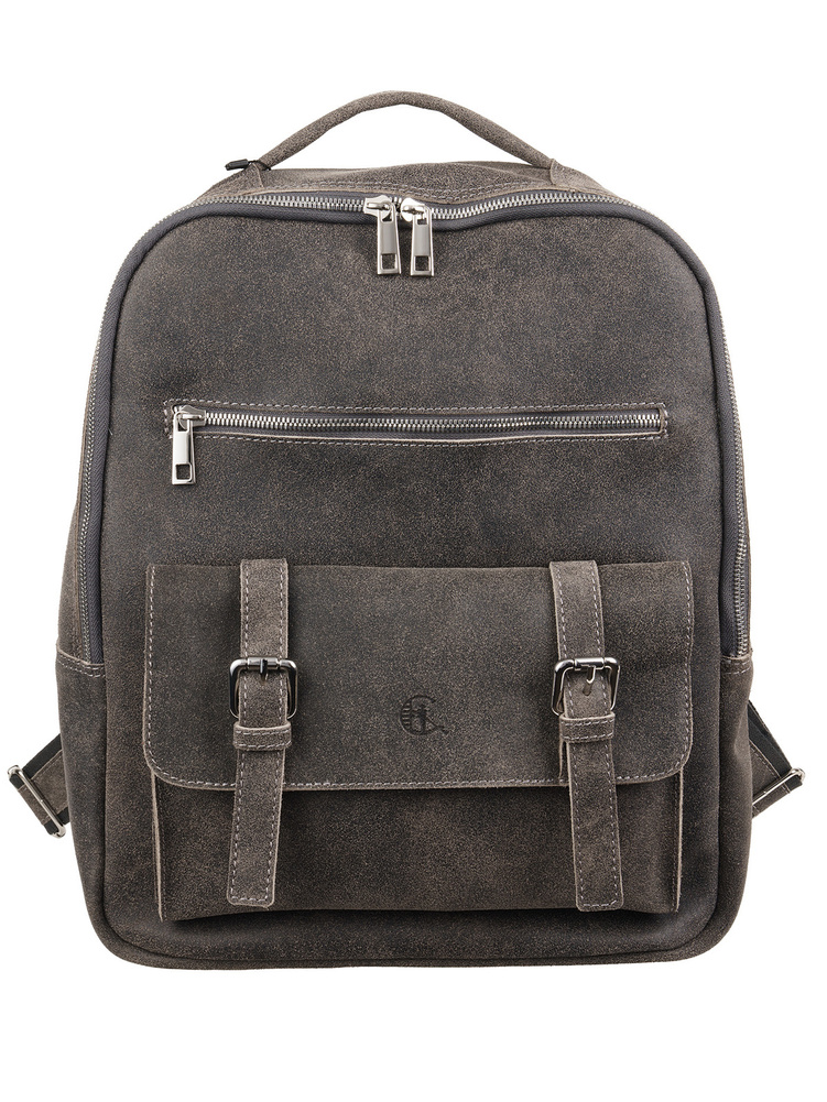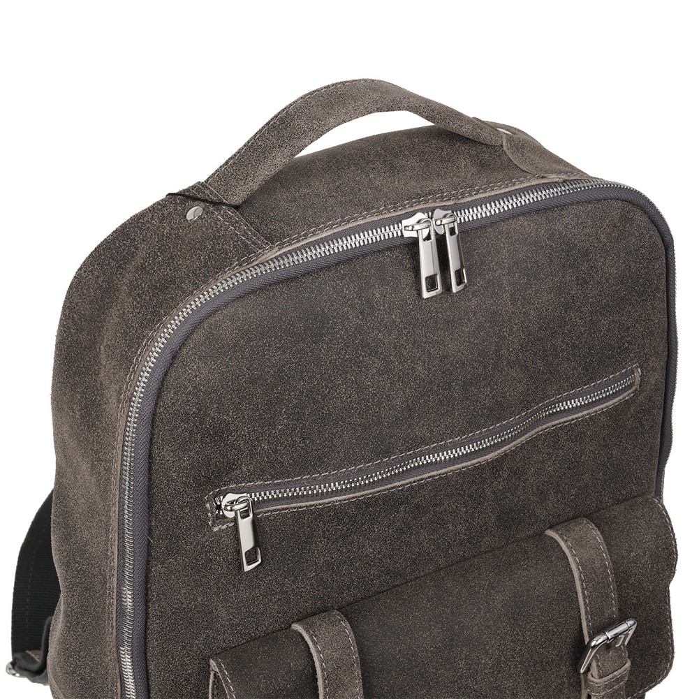 Skórzana rączka – trwała i komfortowa, umożliwia wygodne przenoszenie plecaka w dłoni.
