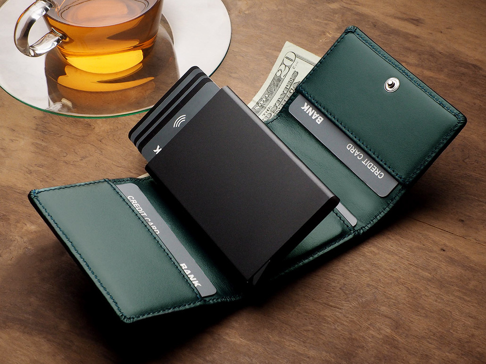 Wykonany z delikatnej skóry Italia. Przechowa wiele kart i dokumentów, zapewniając do nich łatwy dostęp, dzięki specjalnemu mechanizmowi stopniowego wysuwania kart. Dodatkowa, bardzo przestronna kieszonka na banknoty, klapka zapinana na zatrzask - to wszystko składa się na elegancką funkcjonalność, która Cię zachwyci! Dzięki technologii blokowania RFID zastosowanej w designie portfela, Twoje wrażliwe dane oraz środki na kartach płatniczych są całkowicie bezpieczne i chronione przed nieautoryzowanym sczytaniem lub kradzieżą.