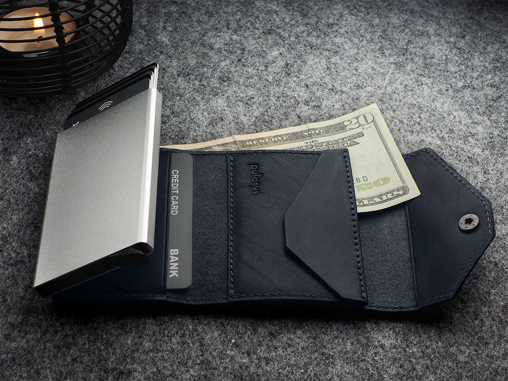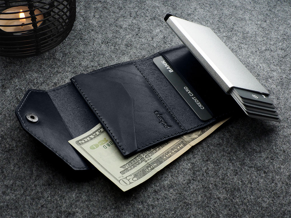 Zdumiewająco pojemny - przechowa wiele kart płatniczych i dokumentów. Specjalny mechanizm stopniowego wysuwania kart zapewnia do nich szybki i łatwy dostęp. Elegancka funkcjonalność tego portfela to również dodatkowa kieszeń na banknoty oraz kieszonka na bilon. Dzięki zastosowanej w jego konstrukcji technologii blokowania RFID, Twoje wrażliwe dane oraz środki na kartach płatniczych są całkowicie bezpieczne i chronione przed nieautoryzowanym skanowaniem lub kradzieżą.