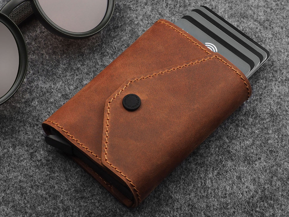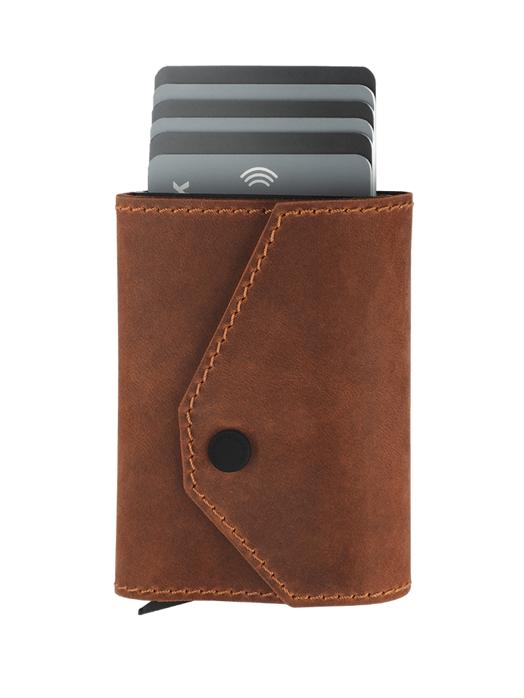 Portfel wykonany ze specjalnie wyselekcjonowanej, woskowanej skóry Hunter.