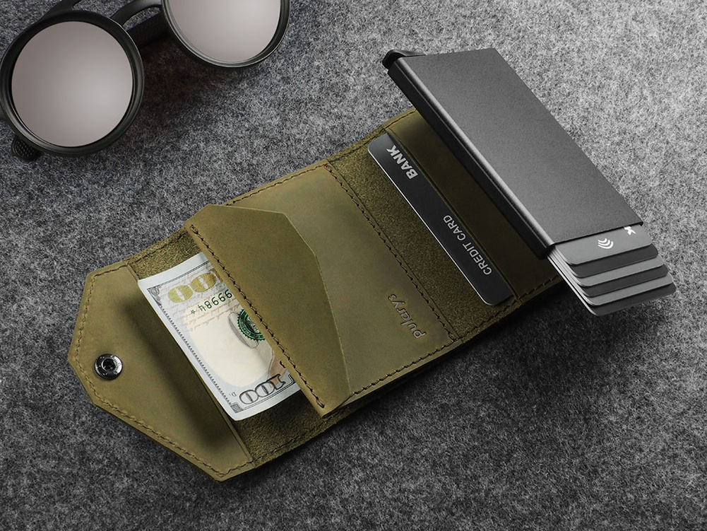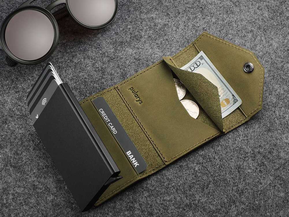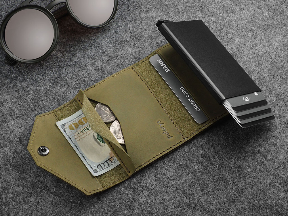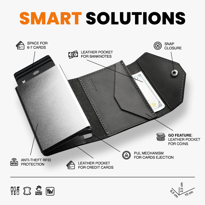 Zdumiewająco pojemny - przechowa wiele kart płatniczych i dokumentów. Specjalny mechanizm stopniowego wysuwania kart zapewnia do nich szybki i łatwy dostęp. Elegancka funkcjonalność tego portfela to również dodatkowa kieszeń na banknoty oraz kieszonka na bilon. Dzięki zastosowanej w jego konstrukcji technologii RFID, Twoje wrażliwe dane oraz środki na kartach płatniczych są całkowicie bezpieczne i chronione przed nieautoryzowanym skanowaniem lub kradzieżą.