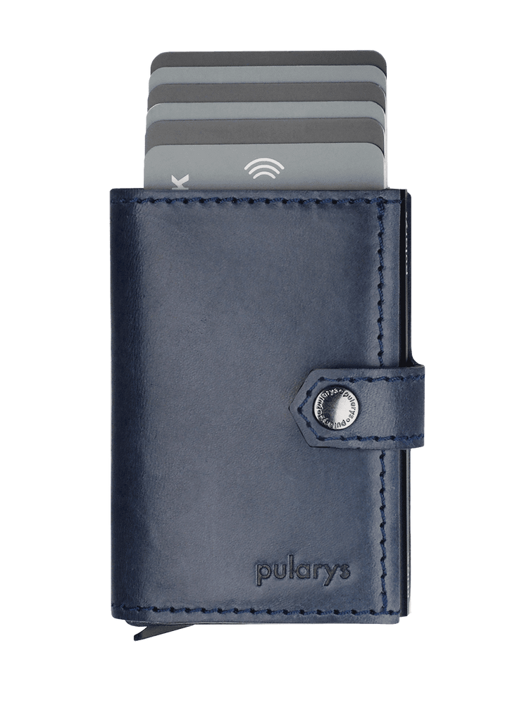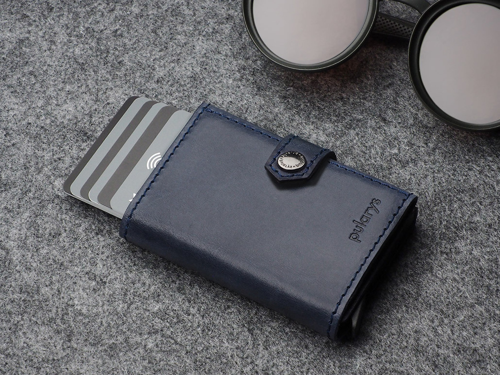Rozmiar: 7 x 10 x 2,5 cm Materiał: Skóra Nomad Skórzana kieszeń na banknoty Mieści 8 kart Wzór zarejestrowany ® Zabezpieczenie RFID Zapięcie na zatrzask Mały portfel o niezwykłym wnętrzu.