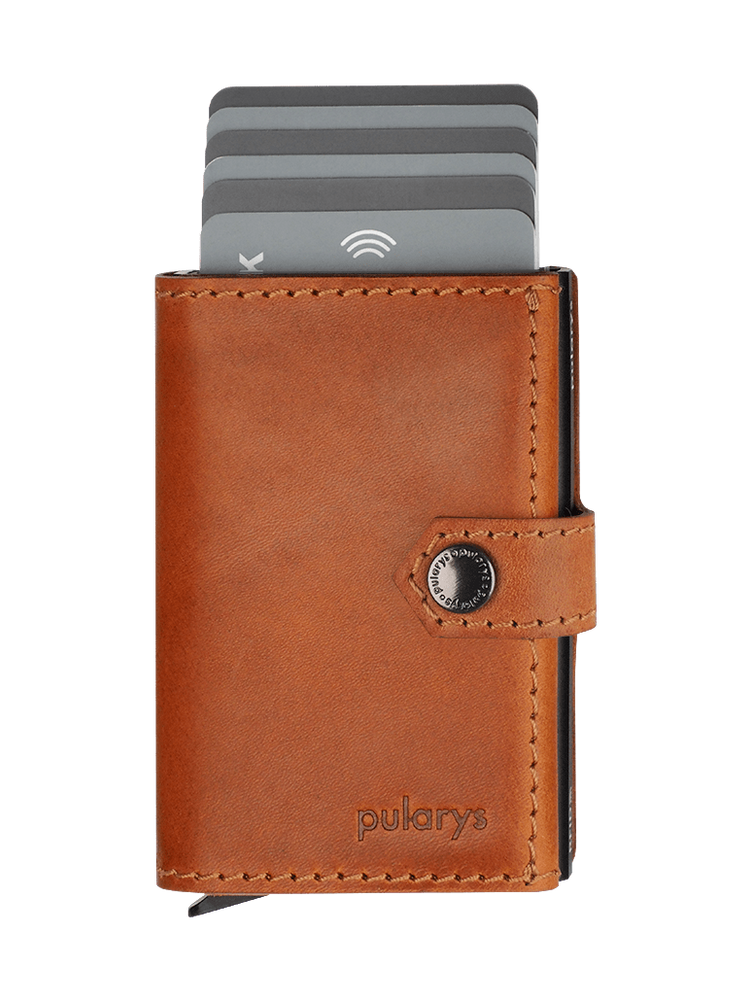 Dwie łatwo dostępne kieszonki idealnie zorganizują dokumenty, karty lub wizytówki. Dodatkowym atutem jest unikalna przegródka na banknoty, wykonana w całości ze skóry. Dzięki technologii blokowania RFID zastosowanej w designie portfela, Twoje wrażliwe dane oraz środki na kartach płatniczych są całkowicie bezpieczne i chronione przed nieautoryzowanym sczytaniem lub kradzieżą. Specjalny mechanizm stopniowego wysuwania kart pozwala szybko sięgnąć po tę, której szukamy.