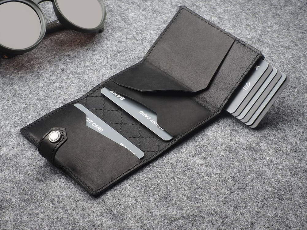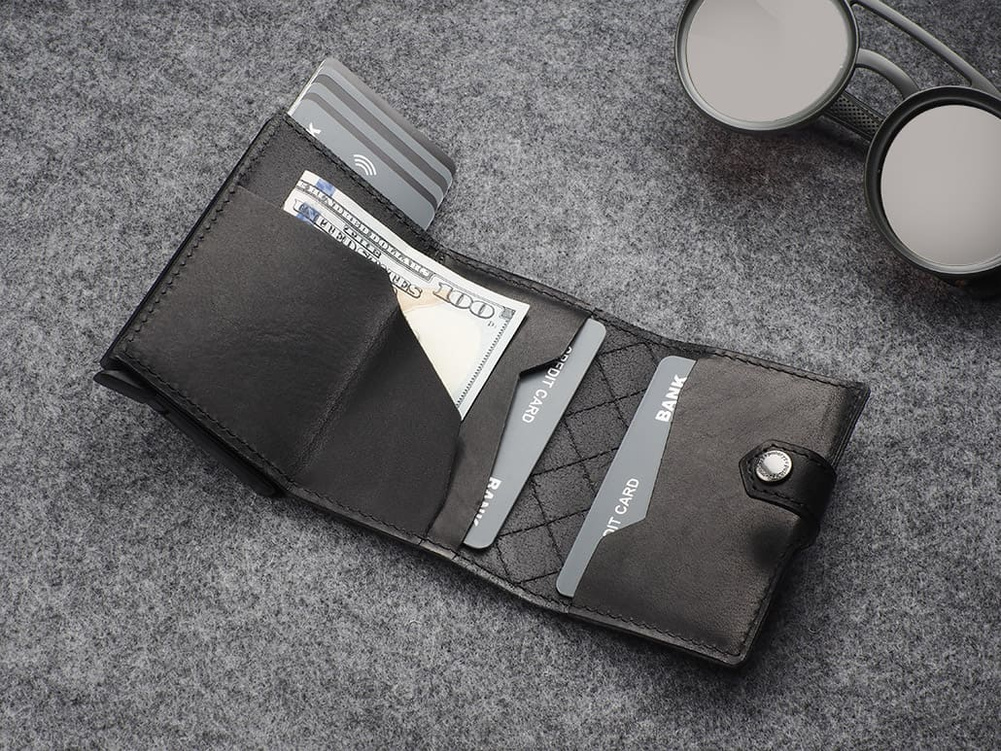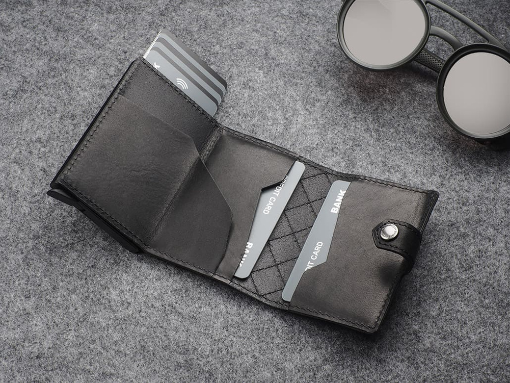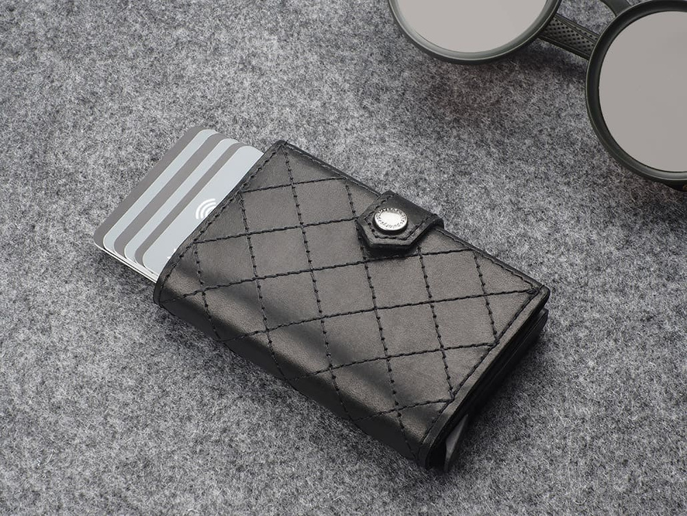 Karty i banknoty masz zawsze pod ręką, uporządkowane w dwóch łatwo dostępnych kieszonkach. Dodatkowym ułatwieniem jest elastyczna gumka na banknoty i nie tylko. Dzięki technologii RFID zastosowanej w designie portfela, Twoje wrażliwe dane oraz środki na kartach płatniczych są całkowicie bezpieczne i chronione przed nieautoryzowanym sczytaniem lub kradzieżą. Specjalny mechanizm stopniowego wysuwania kart pozwala szybko sięgnąć po tę, której szukamy. Wzór zarejestrowany - unikalny i oryginalny!