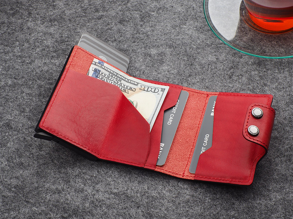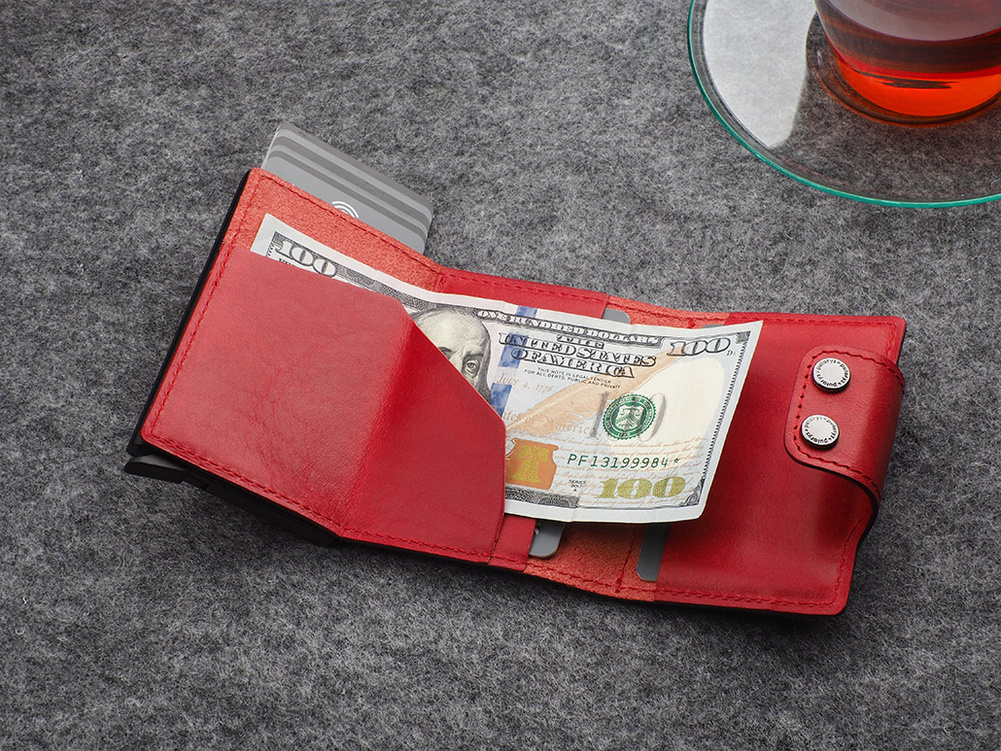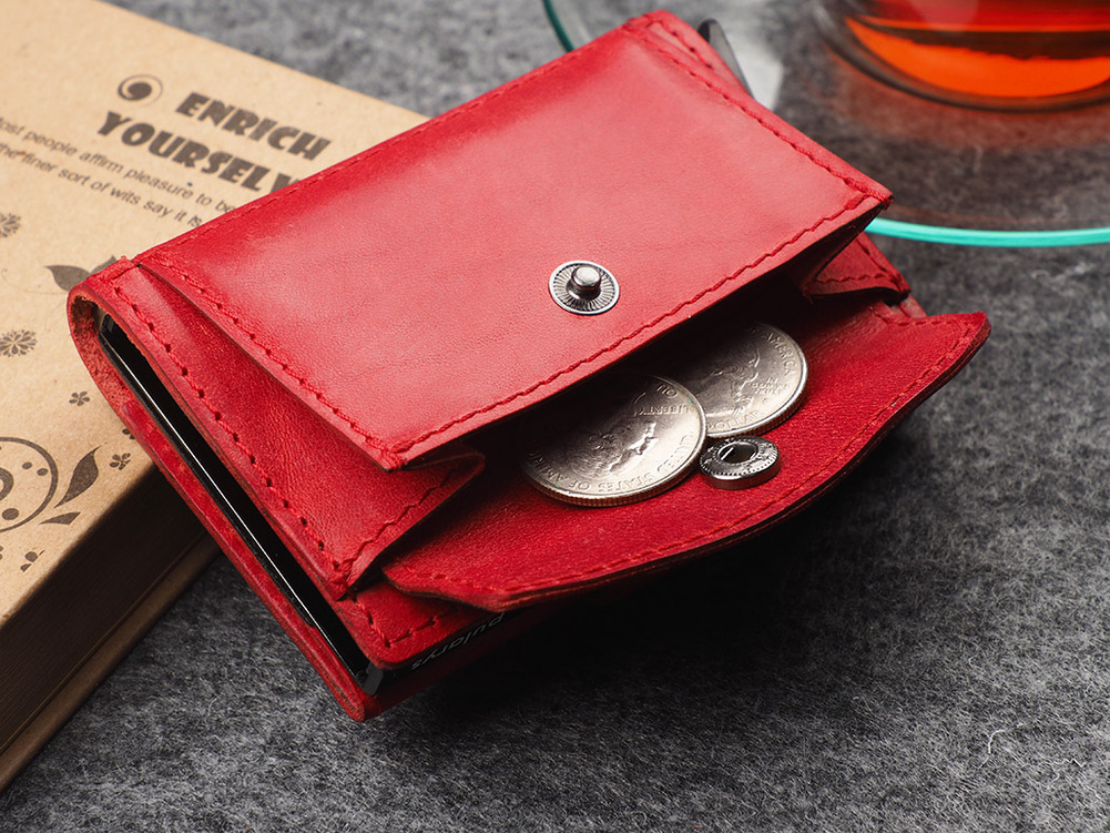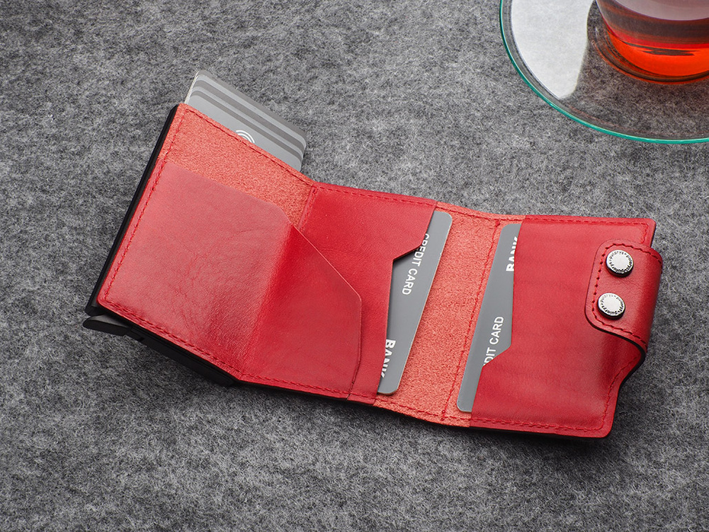 Wykonany z roślinnie garbowanej skóry Nomad. Pojemny - przechowa wiele kart i dokumentów, zapewniając do nich łatwy dostęp, dzięki specjalnemu mechanizmowi stopniowego wysuwania kart. Dodatkowym atutem jest unikalna przegródka na banknoty, wykonana w całości ze skóry. Wewnątrz portfel przechowa wiele kart i banknoty oraz niezbędny bilon - w eleganckiej, zewnętrznej kieszonce. Klapka zapinana jest na dwa eleganckie zatrzaski. Dzięki technologii blokowania RFID zastosowanej w designie portfela, Twoje wrażliwe dane oraz środki na kartach płatniczych są całkowicie bezpieczne i chronione przed nieautoryzowanym sczytaniem lub kradzieżą.
