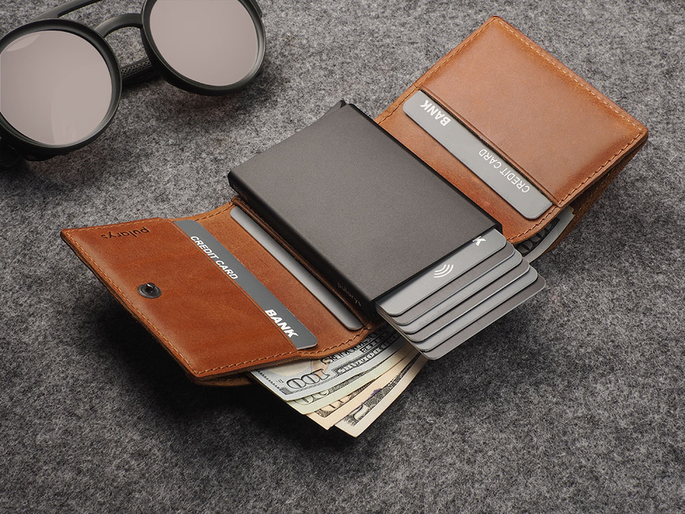Przechowa wiele kart płatniczych i dokumentów. Specjalny mechanizm stopniowego wysuwania kart -zapewnia do nich szybki i łatwy dostęp. Elegancka funkcjonalność tego portfela to również dodatkowa, obszerna kieszeń na banknoty oraz klapka zapinana na zatrzask. Dzięki zastosowanej w jego konstrukcji technologii blokowania RFID, Twoje wrażliwe dane oraz środki na kartach płatniczych są całkowicie bezpieczne i chronione przed nieautoryzowanym skanowaniem lub kradzieżą.