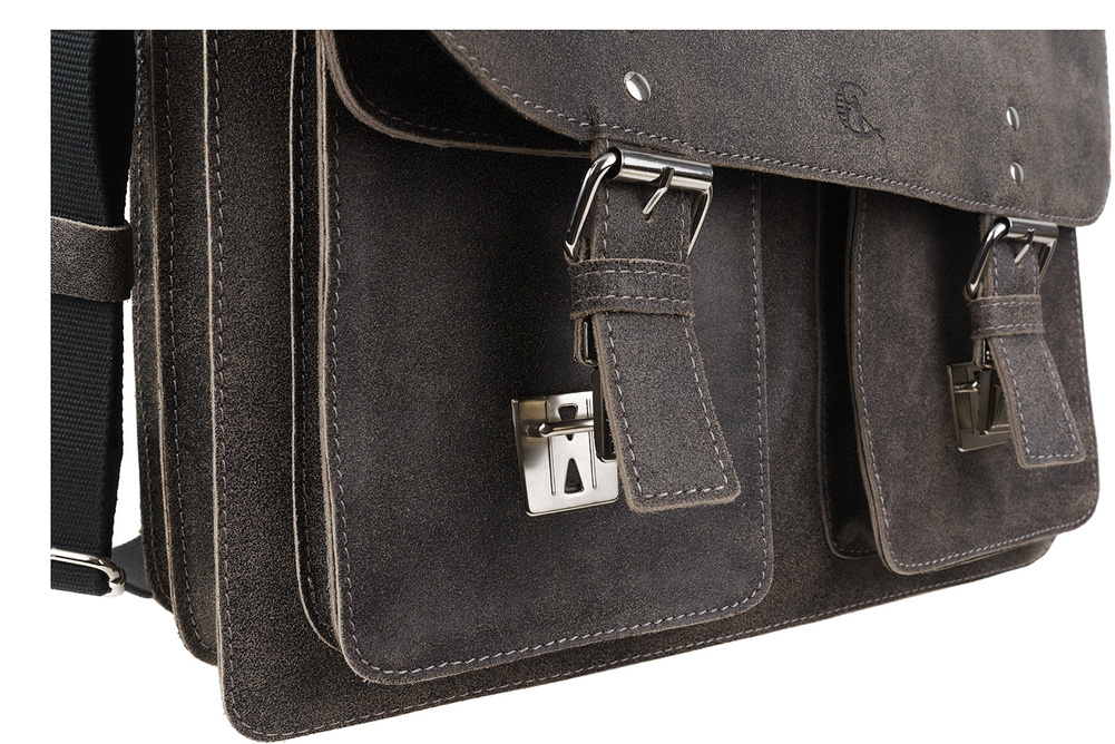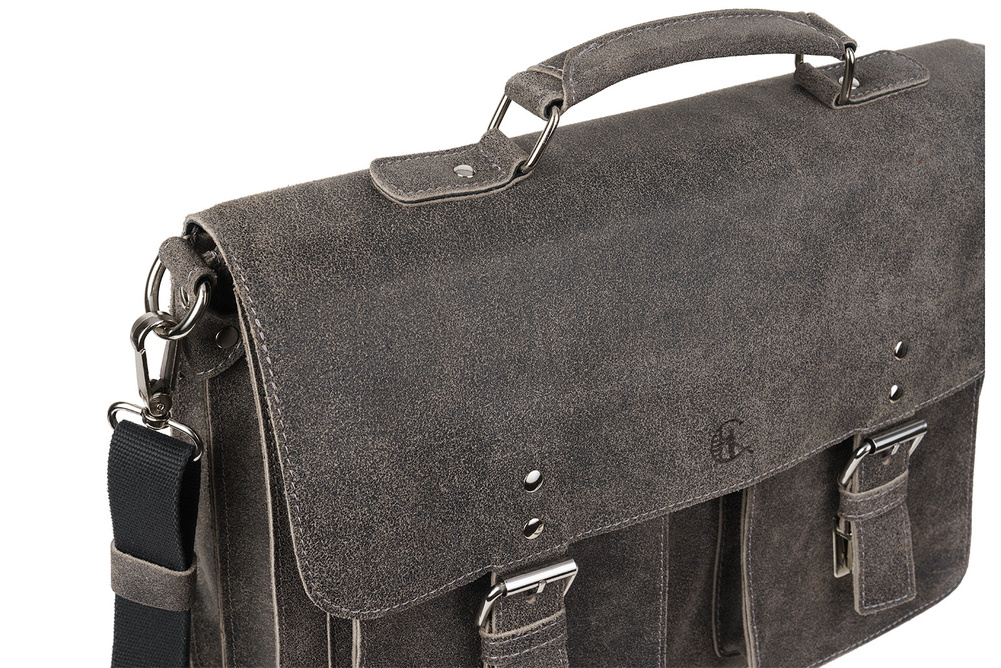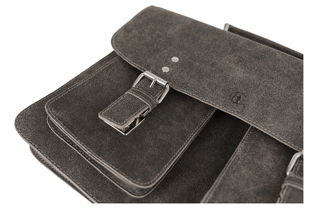 Torba wyposażona jest w ręcznie wykonaną rączkę z tej samej skóry oraz odpinany, regulowany pasek parciany z najwyższej jakości belgijskiej taśmy – gruby, szeroki i odporny na rozciąganie.
