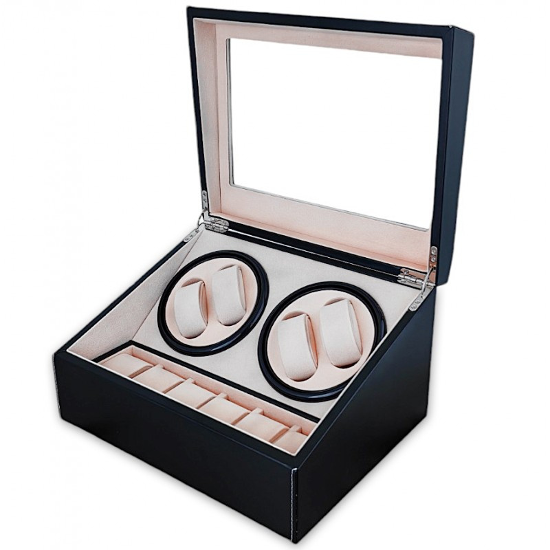 Elegancki Rotomat na 4 zegarki mechaniczne z automatycznym naciągiem  Wystarczy uruchomić rotator aby obracał zegarek.