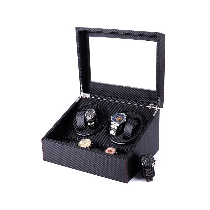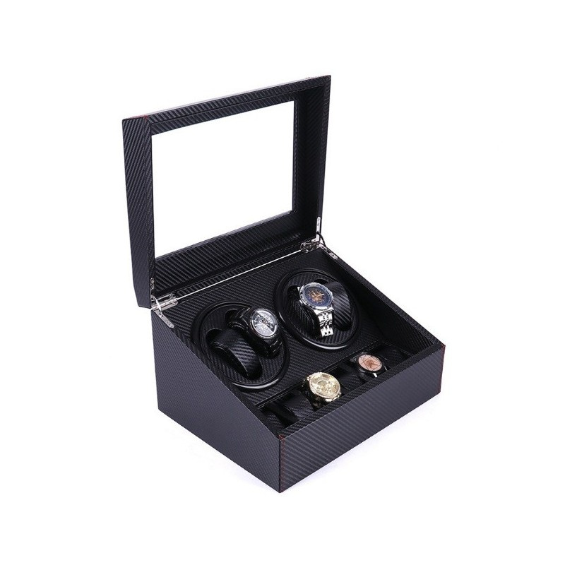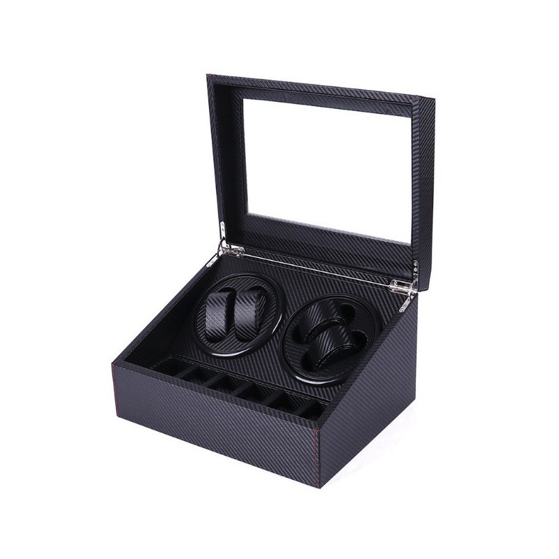 Dodatkowo posiada 6 slotów z poduszeczkami na zegarki Cechy produktu: - eleganckie wykończenie ekoskóra imitującą karbon - wbudowany, niemal bezgłośny silnik