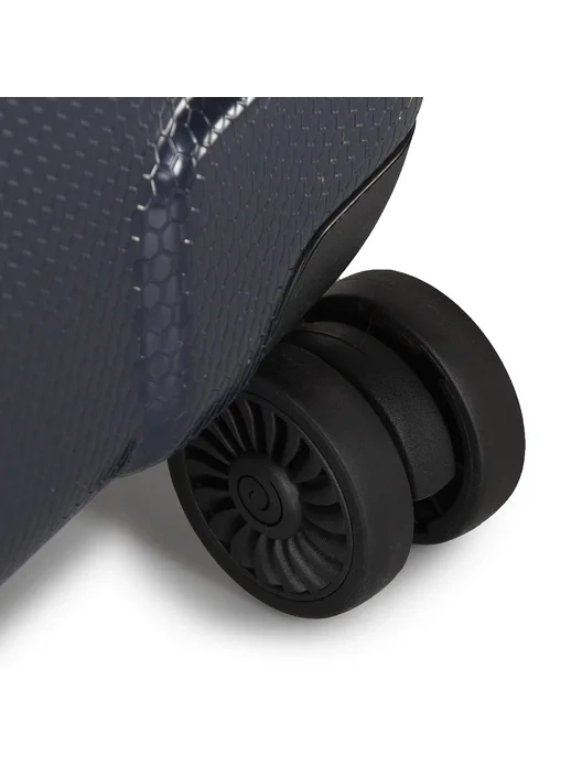 - 4 podwójne koła (spinner 360) (koła wykonane z gumy i PVC co dodatkowo wzmacnia je przed uderzeniami zewnętrznymi, oś na której zamocowane zostało koło wzmocniona pyłem diamentowym)
