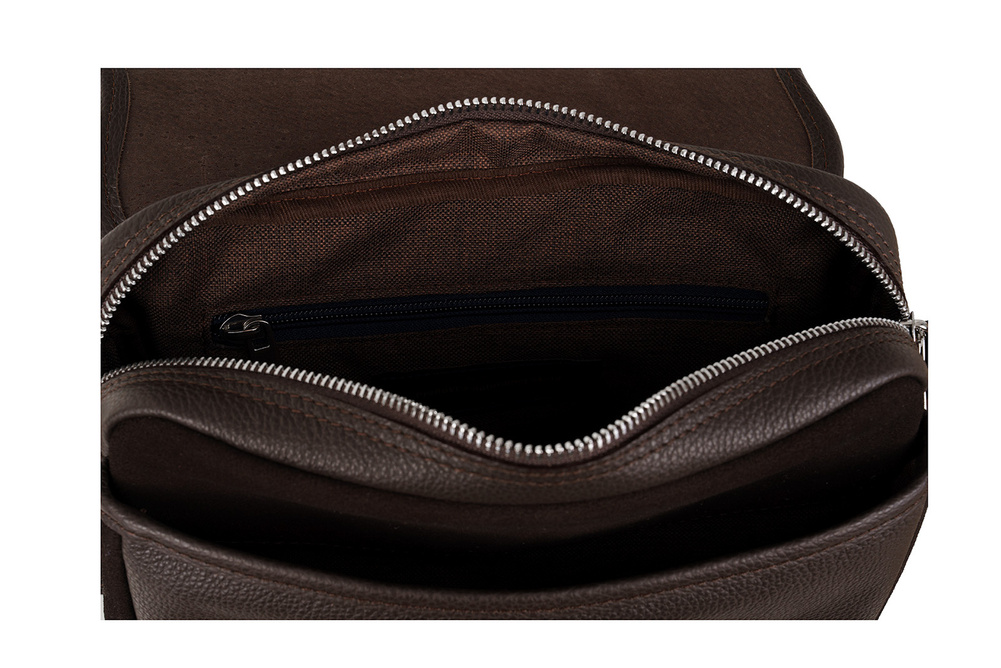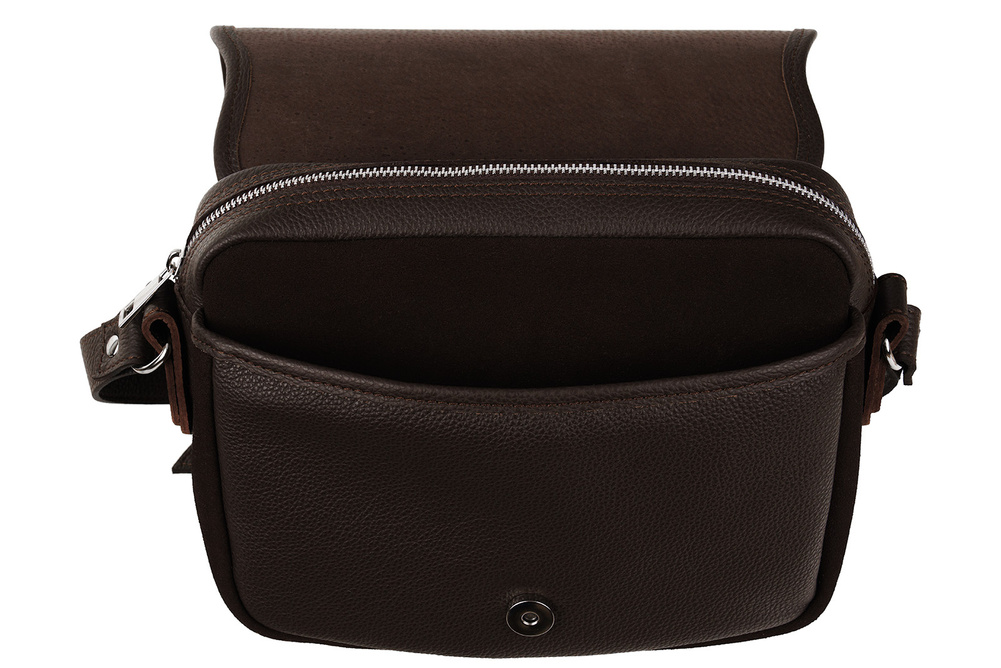Wnętrze torebki zostało starannie wykończone wysokogatunkową podszewką, która podkreśla dbałość o każdy detal. W środku znajduje się kieszonka na drobiazgi, a pod klapką – praktyczna, otwarta kieszeń na rzeczy, do których chcesz mieć szybki dostęp. Całość zamykana jest solidnym suwakiem, który zapewnia bezpieczeństwo zawartości.