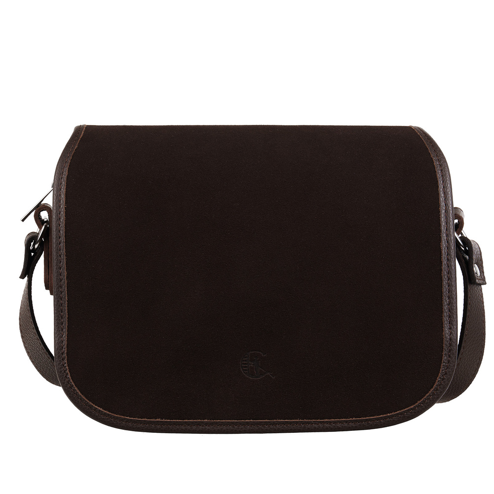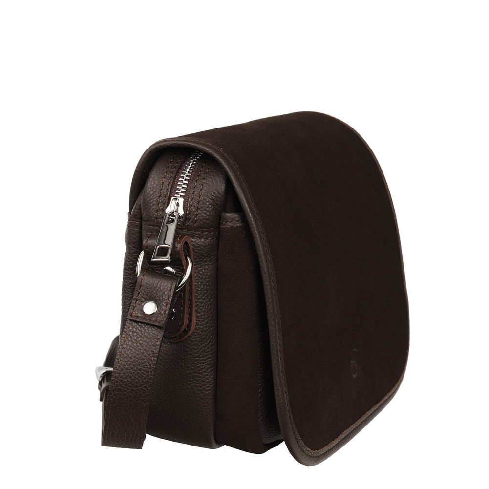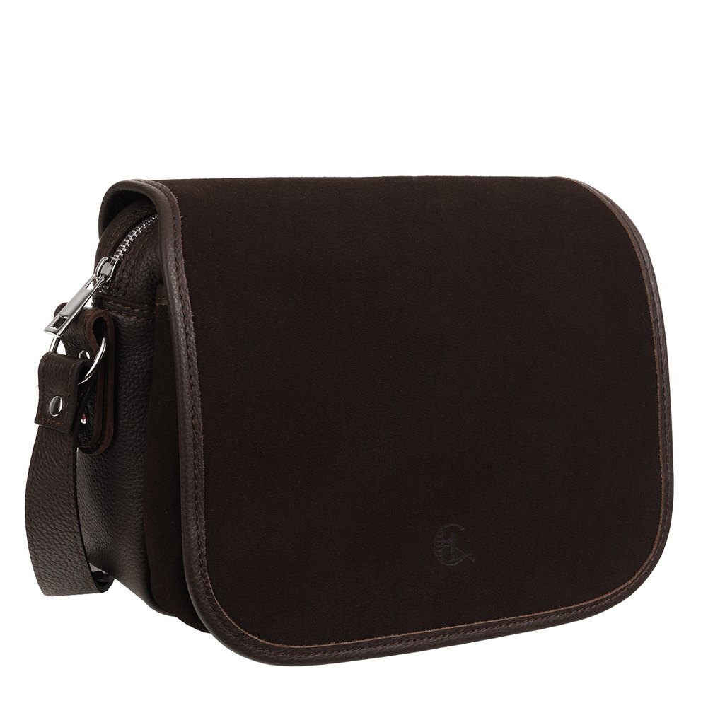 Torebka wykonana jest z brązowego weluru w połączeniu z naturalną skórą o groszkowanej fakturze. To zestawienie nadaje jej wyjątkowej głębi i subtelnego blasku. Miękki welur wspaniale kontrastuje z fakturą skóry, tworząc harmonijną całość pełną klasy i kobiecego wdzięku.