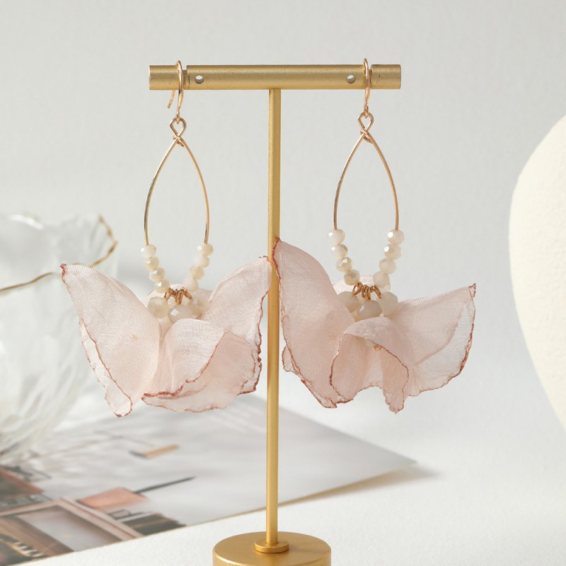 Kolczyki sztuczne tiulowe kwiaty Będą stanowić piękne uzupełnienie eleganckiej kreacji jak i codziennego stroju.
