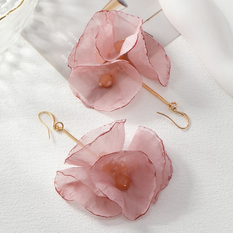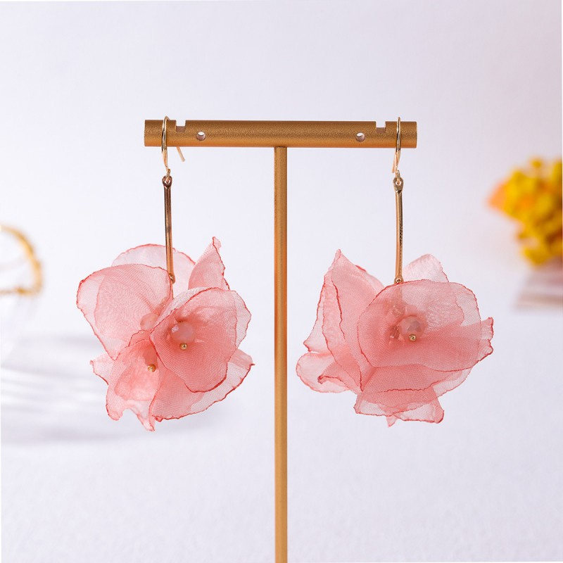 Kolczyki sztuczne tiulowe kwiaty Będą stanowić piękne uzupełnienie eleganckiej kreacji jak i codziennego stroju.