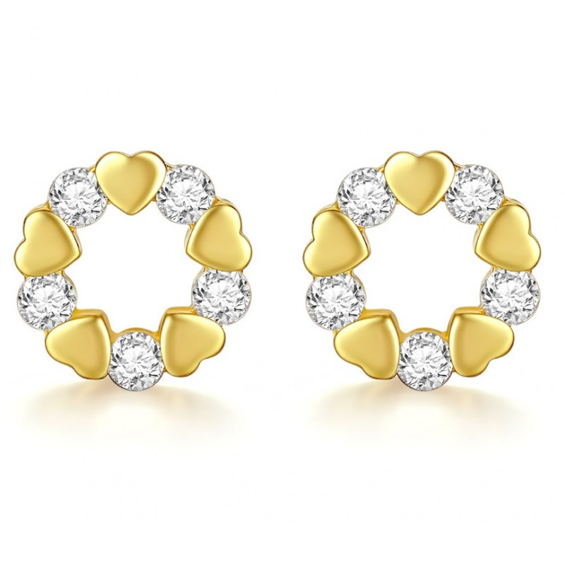 Kolczyki ze stali szlachetnej pozłacane 14k złotem, cyrkonie serca KST2856