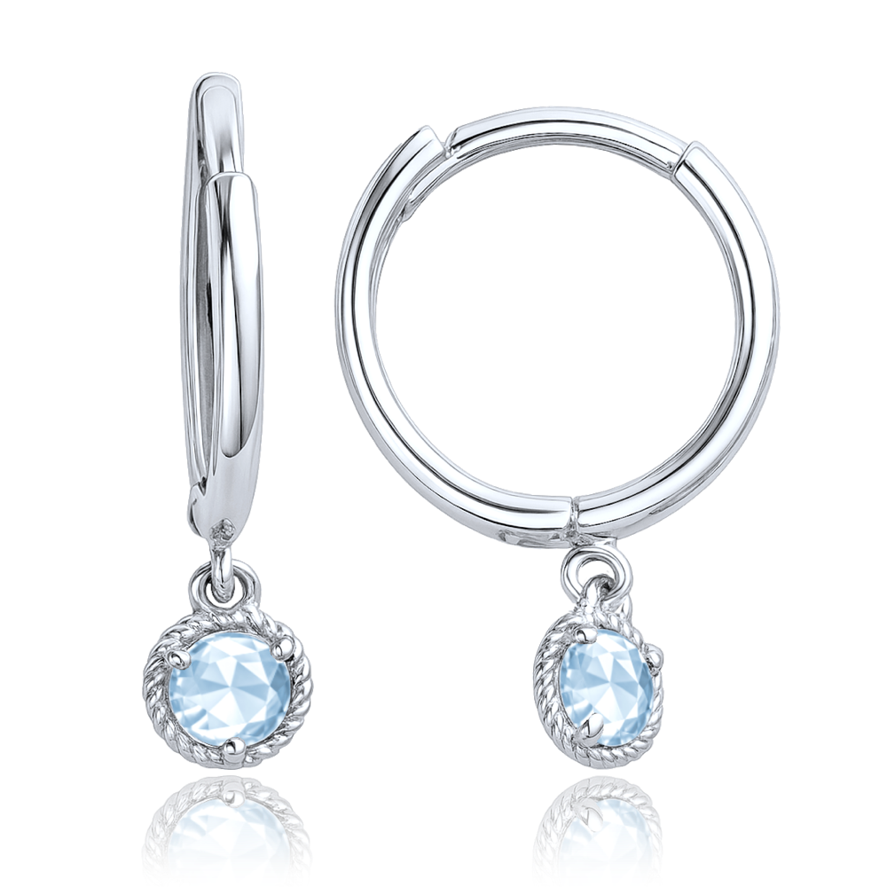 Delikatne kolczyki z białego złota z niebieskimi cyrkoniami wykonane z prawdziwego 14-karatowego złota, pokryte rodem dla trwałego połysku.