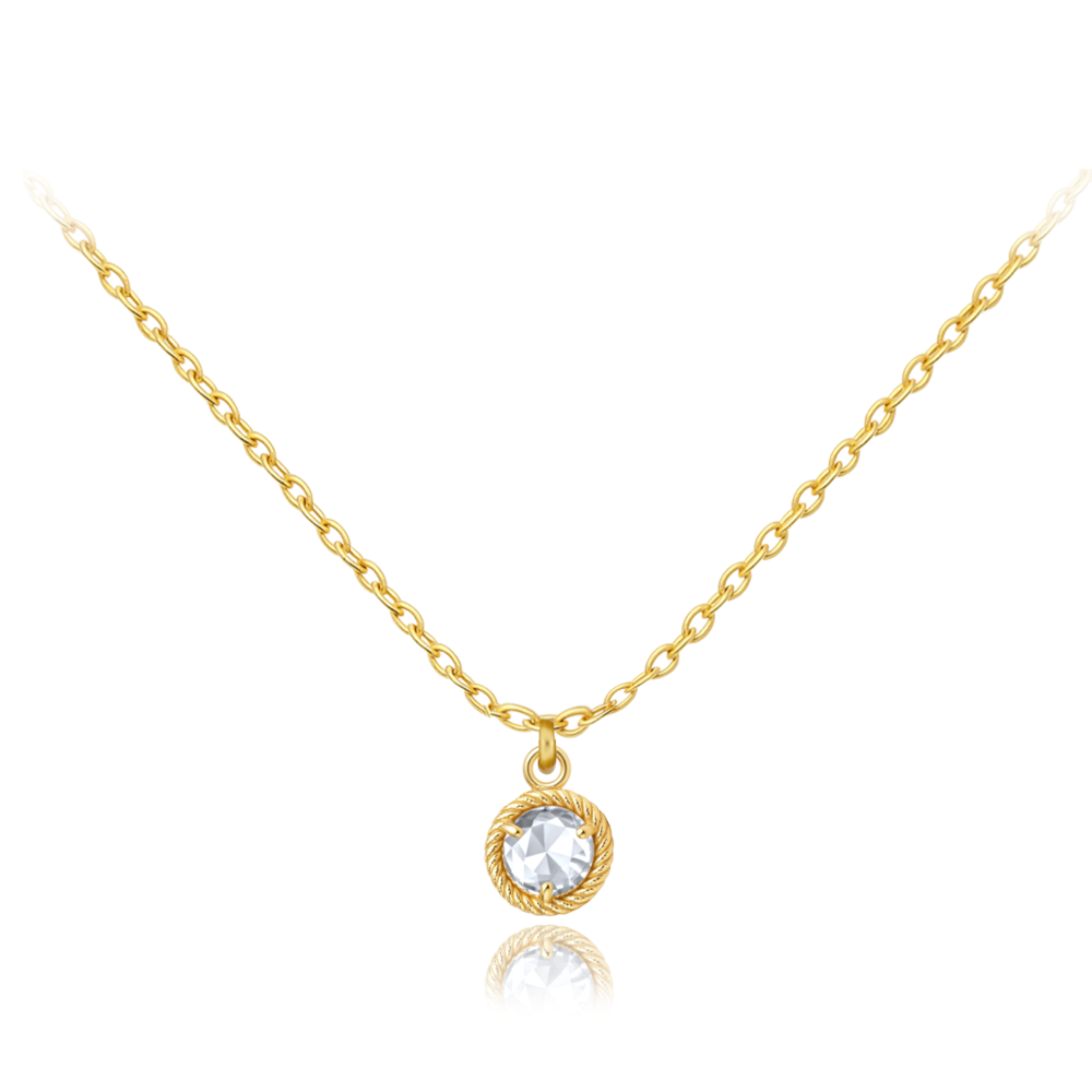 Delikatny złoty naszyjnik z białym cyrkonem wykonany z prawdziwego 14-karatowego złota jest odpowiedni na co dzień i na specjalne okazje.