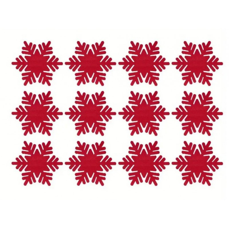 Efektowna podkładka na stół, do sztućców Zestaw 12 świątecznych podkładek w kształcie czerwonej śnieżynki Stylowe, filcowe podkładki w kształcie śnieżynki o