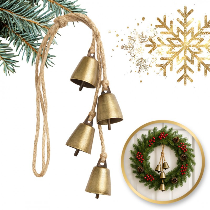 Metalowe dzwonki, ozdoba świąteczna - zestaw 4 szt.