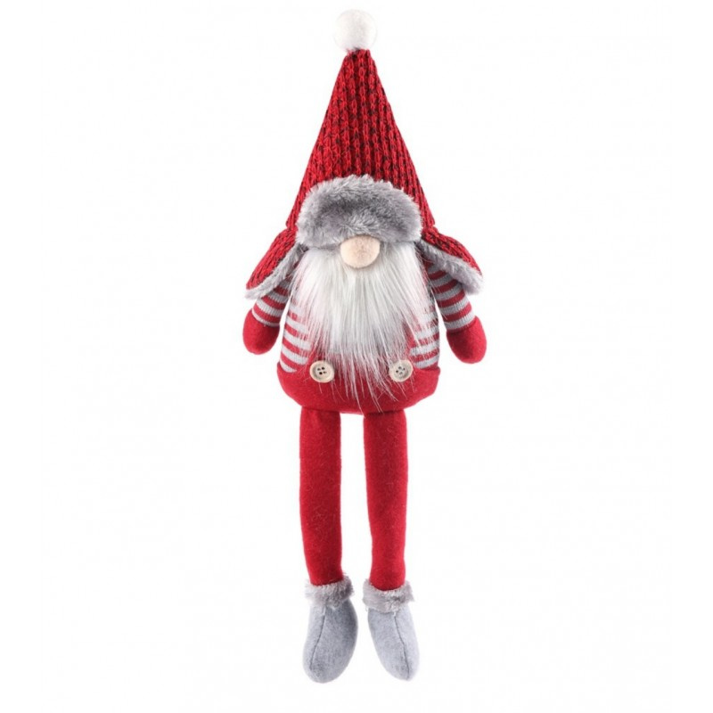 Świąteczny krasnal z wiszącymi nóżkami Wypełniony pluszem Dla stabilizacji pozycji siedzącej w tułowiu posiadają piasek - co dodatkowo je obciąża Waga: 150 g Wymiary:
