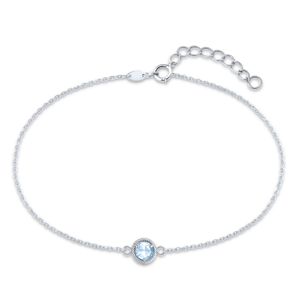 Delikatna bransoletka z białego złota z niebieskim cyrkonem wykonana z prawdziwego 14-karatowego złota ma powierzchnię pokrytą rodem, co zapewnia trwały połysk i odporność. Biżuteria posiada cechę potwierdzającą próbę 585/1000. Poczuj pewność siebie, jaką daje złota biżuteria czeskiej marki MINET, i ciesz się poczuciem wyjątkowości, które uczyni Twoją stylizację doskonałą.