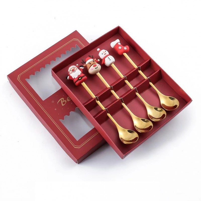 Zestaw łyżeczek ze świątecznymi figurkami w pudełku. Piękny zestaw 4 sztuk łyżeczek w pudełku z przykrywka to idealny pomysł na prezent.