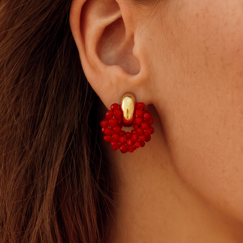 Kolczyki sztuczne sztyfty przy uchu z koralikami.